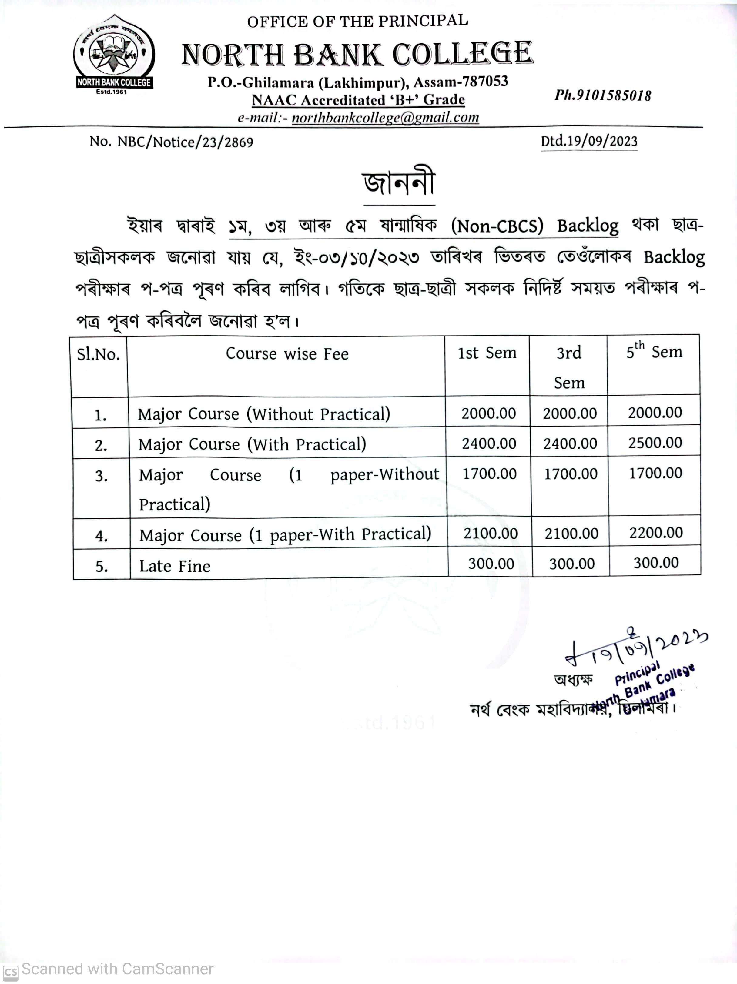 Exam. Form Fill Up Notice 1st, 3rd and 5t Sem (CBCS) Backlog-2025
