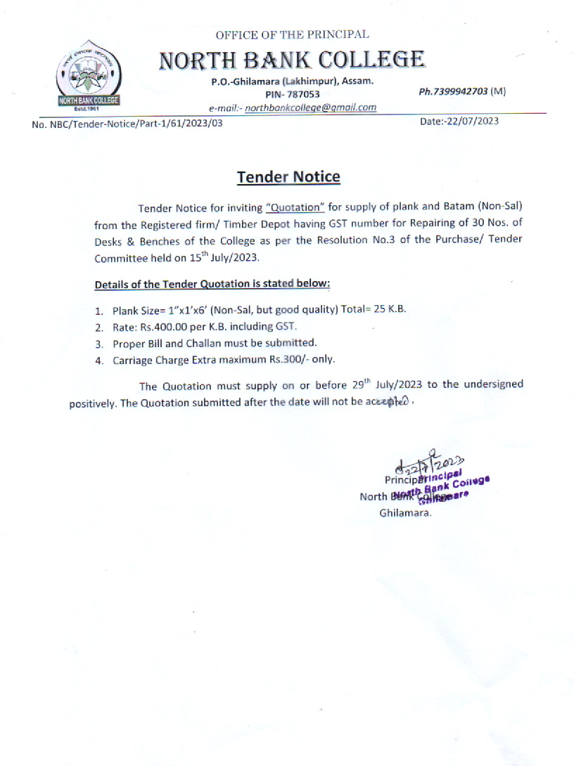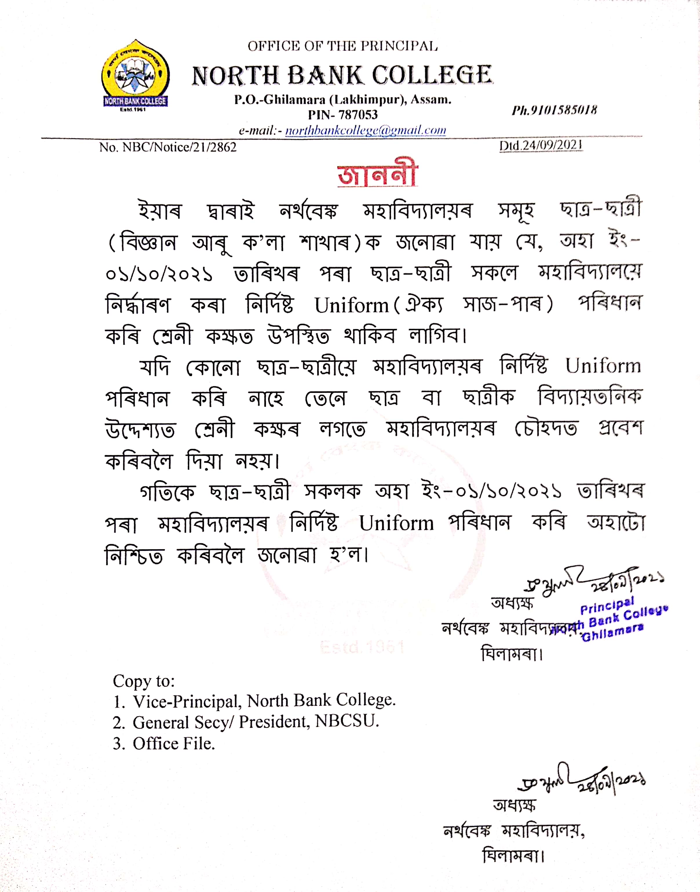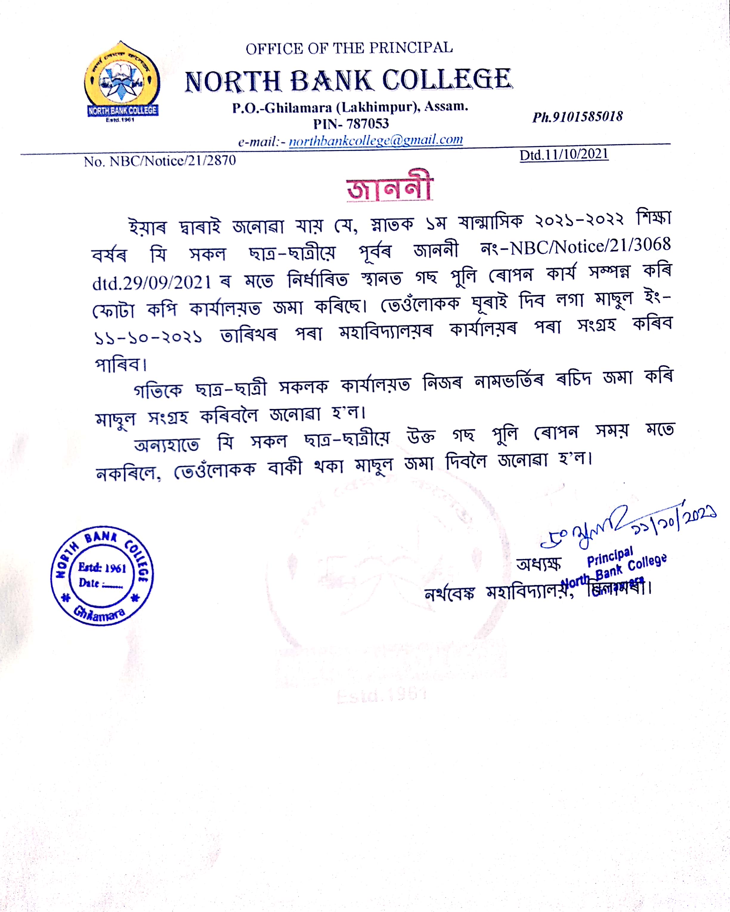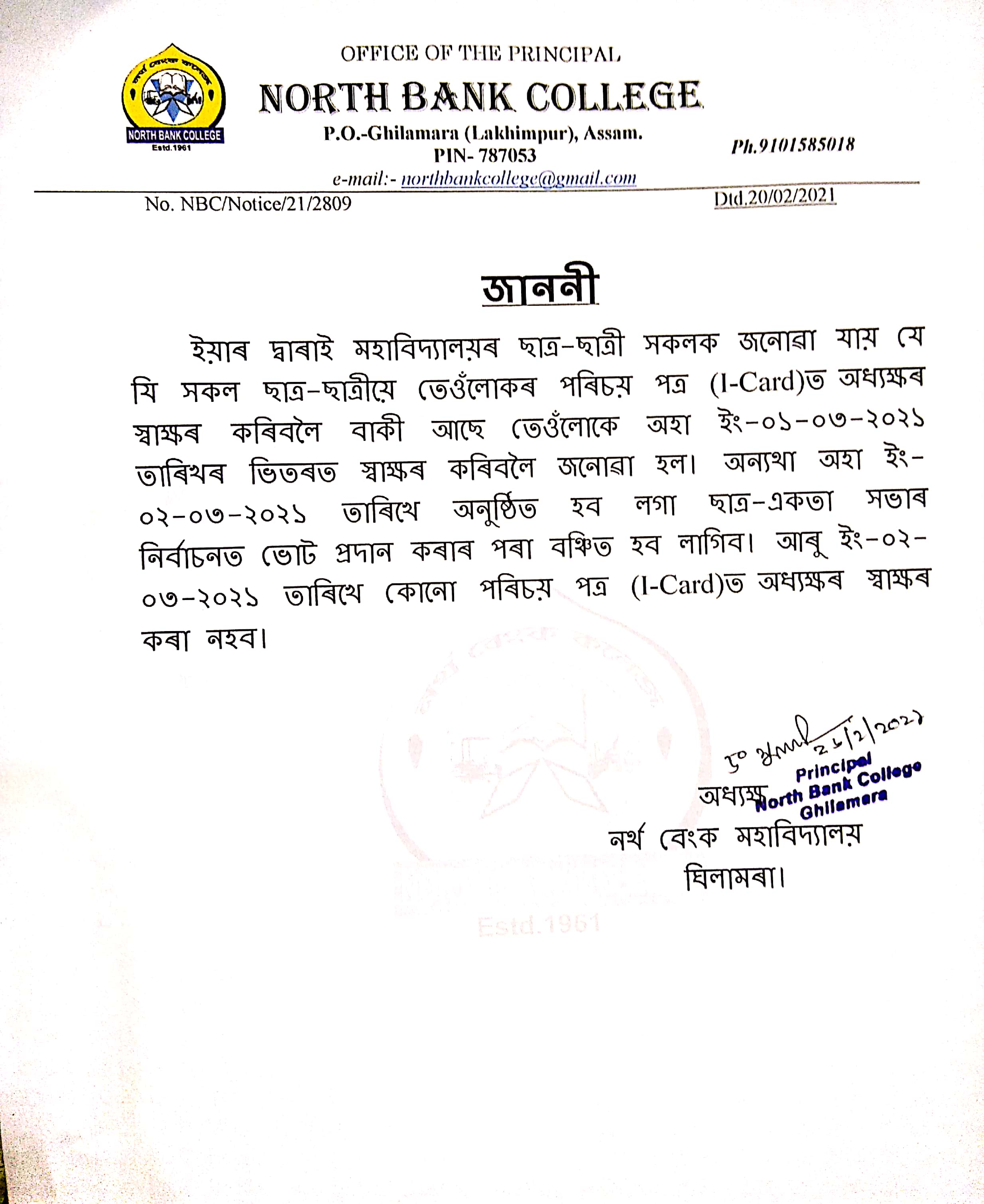 Exam. Form Fillup Notice for 1st, 3rd and 5th Sem (Non CBCS) 2020
