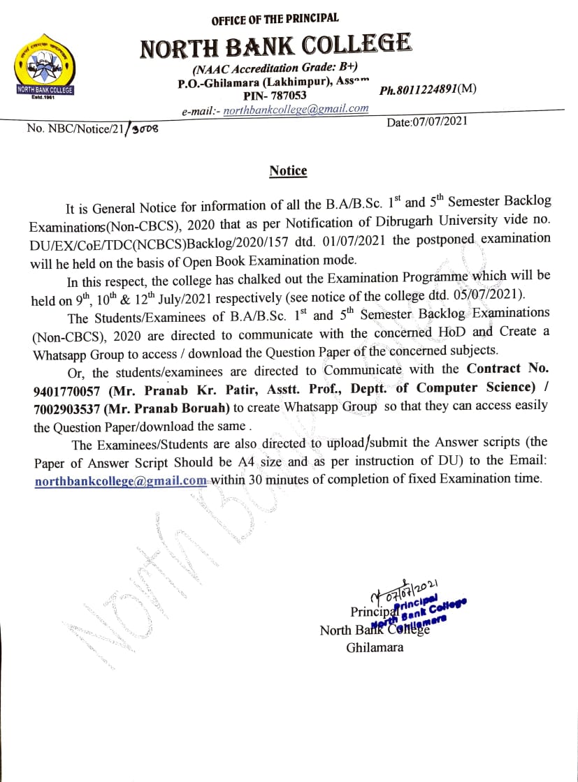 Last and Final Chance for Exam. Form Fillup of 1st, 3rd and 5th Sem (Non-CBCS) Exam-2020