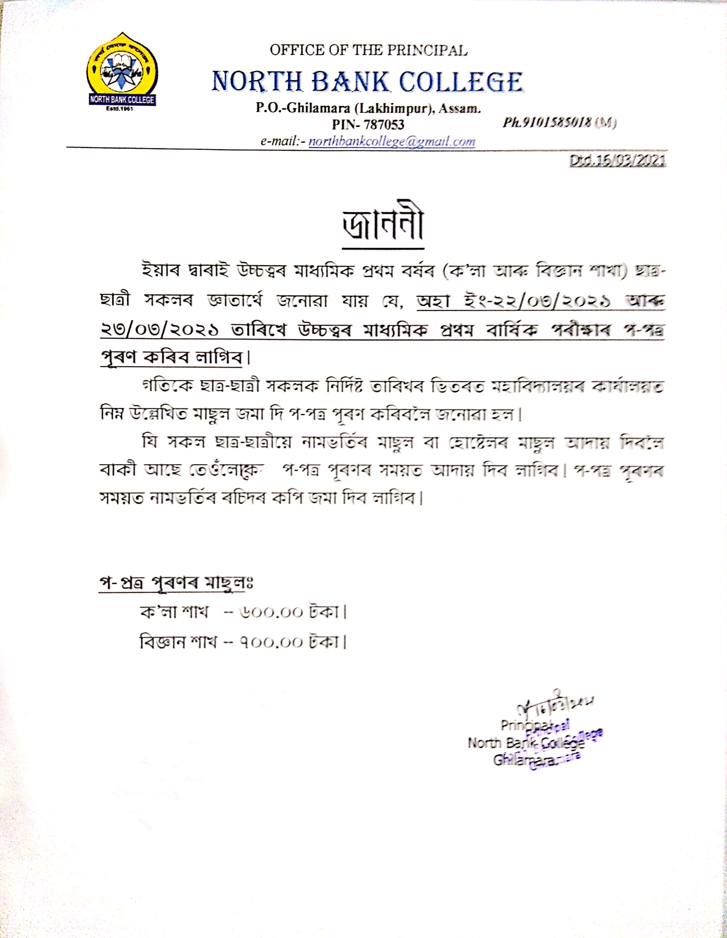 HS 2nd Yr Exam Form Fill Up Notice-2025