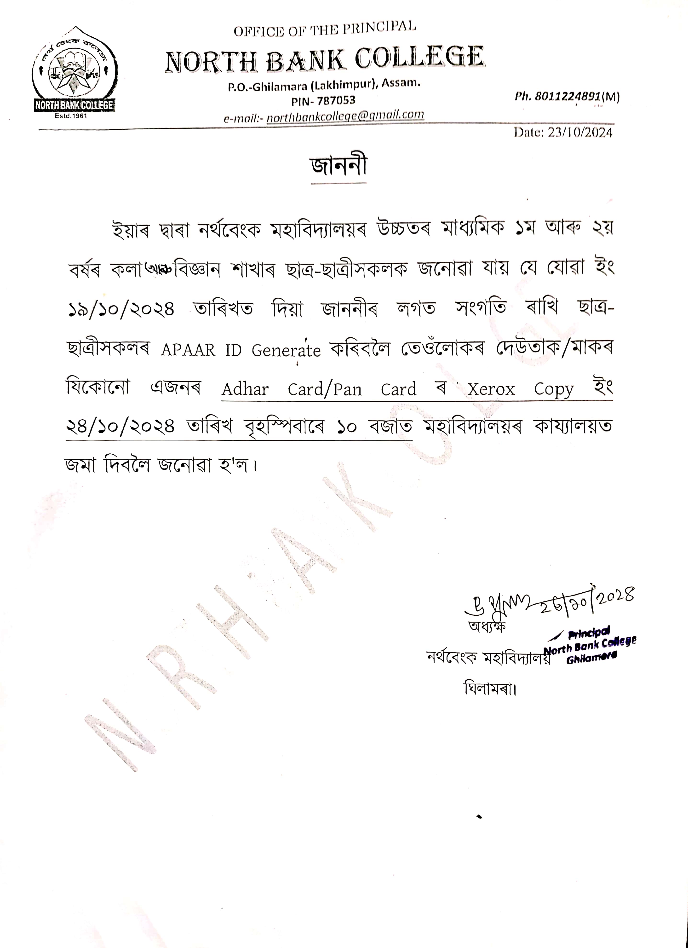 Admission Fee Return of HS 1st Year-2024 BPL Student