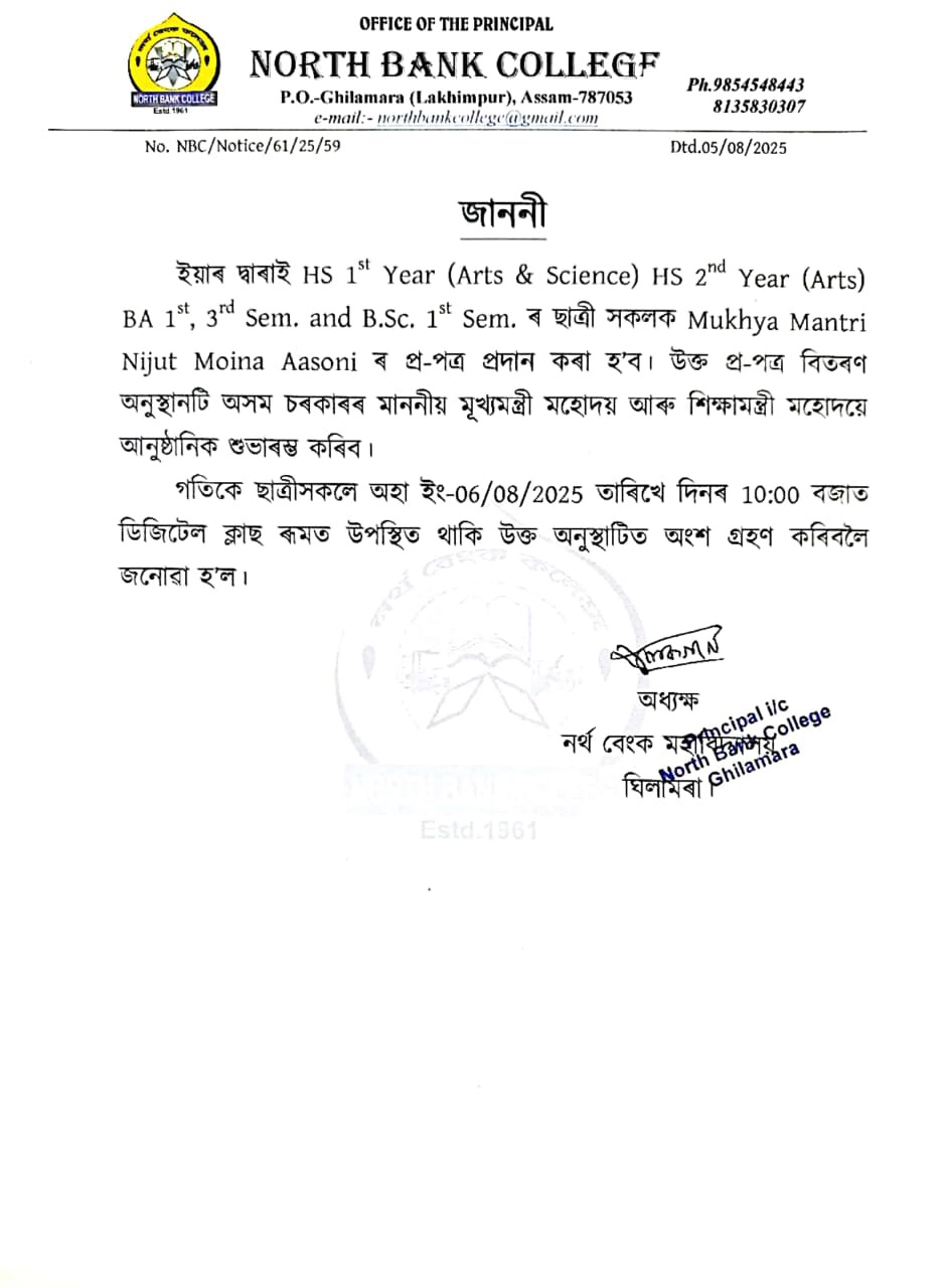 Daily Class Notice for BA and BSc 3rd Sem-2025