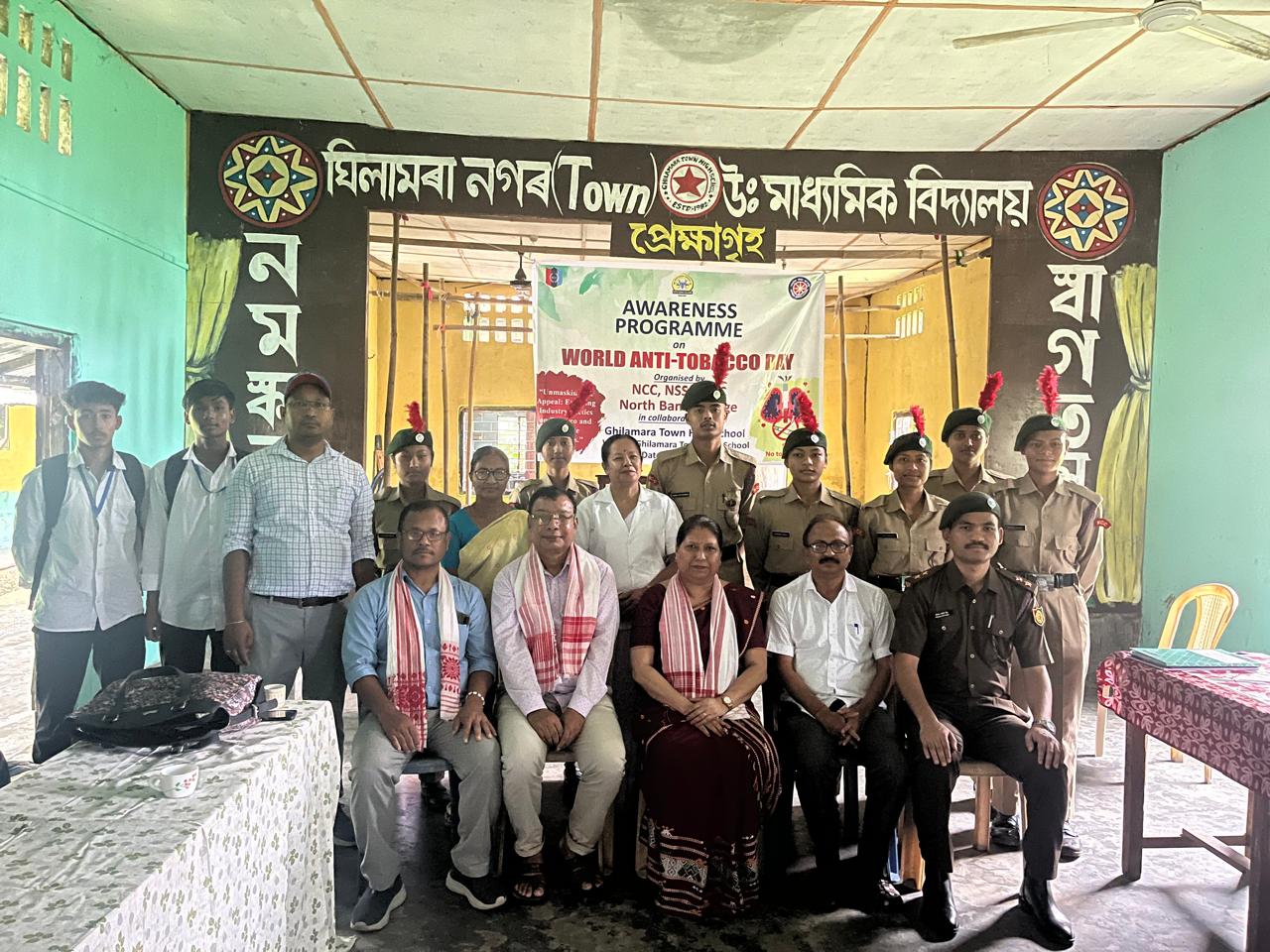An Awareness Programme on "WORLD ANTI-TOBACCO DAY" was organized by NCC, NSS & IQAC of North Bank College in collaboration with Ghilamara Town High School on 31st June, 2025