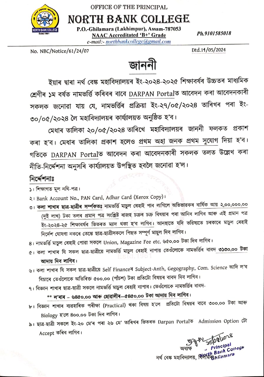 Admission Fee Return of HS 1st Year-2024 BPL Student
