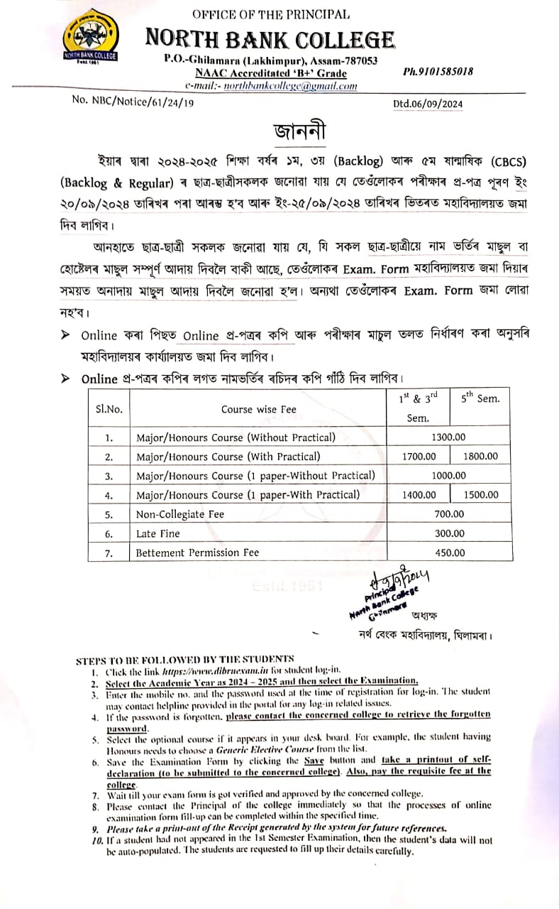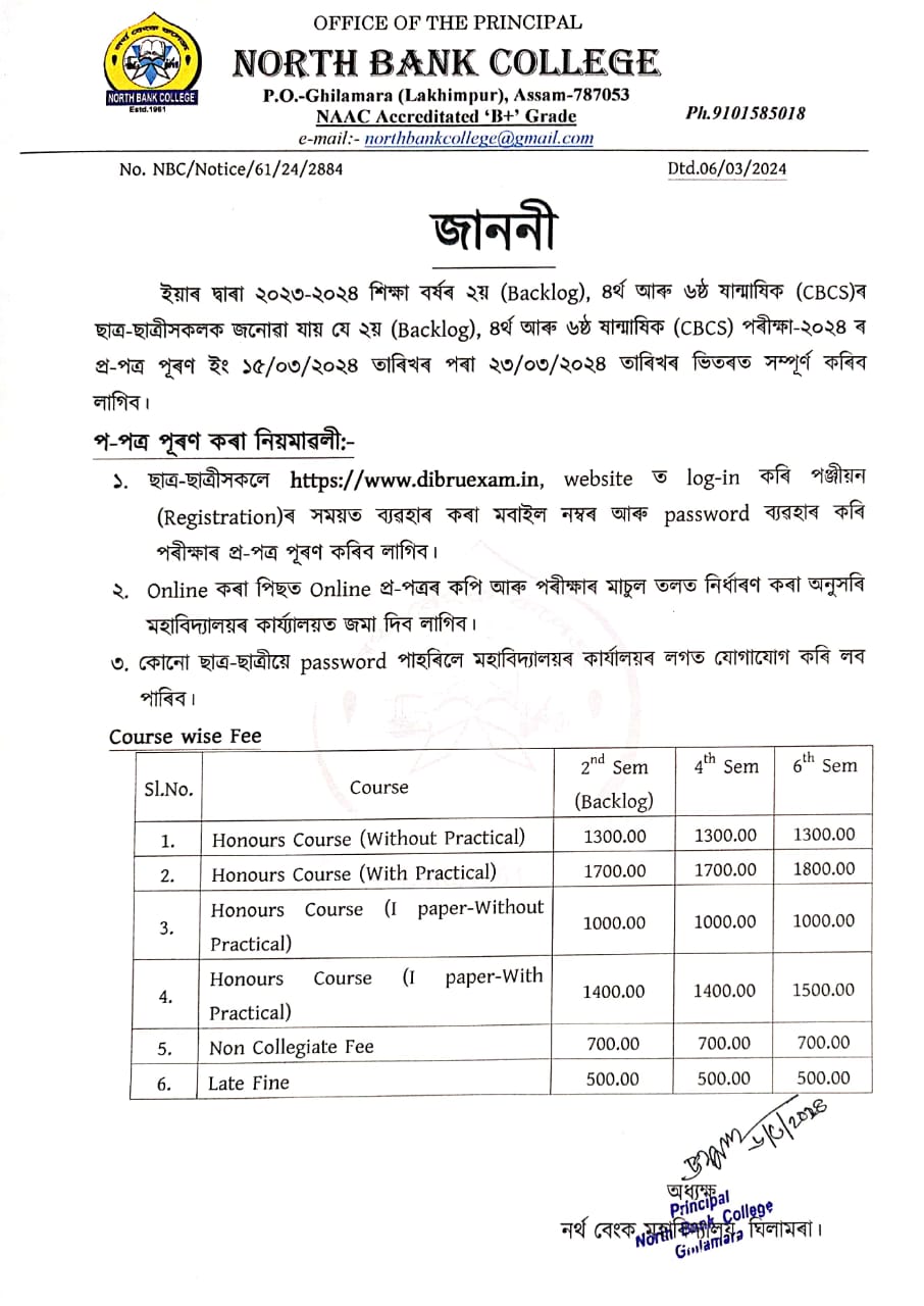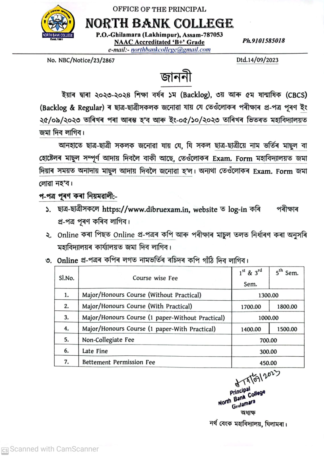Exam. Form Fill Up Notice 1st, 3rd and 5t Sem (CBCS) Backlog-2025