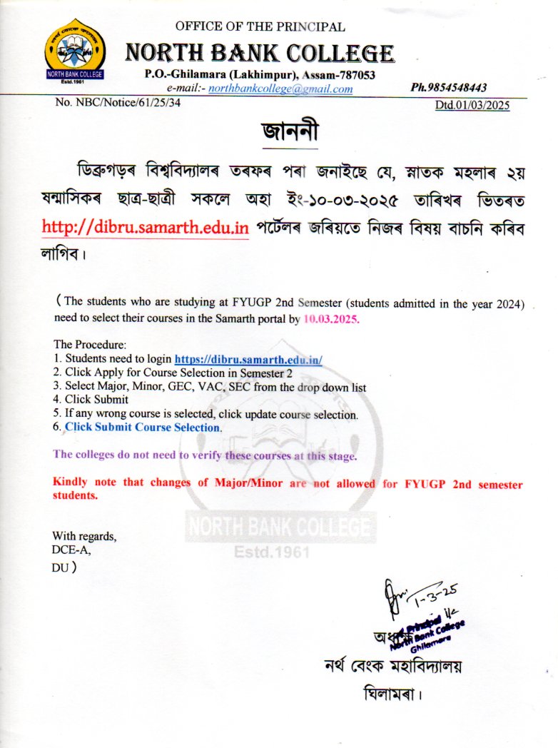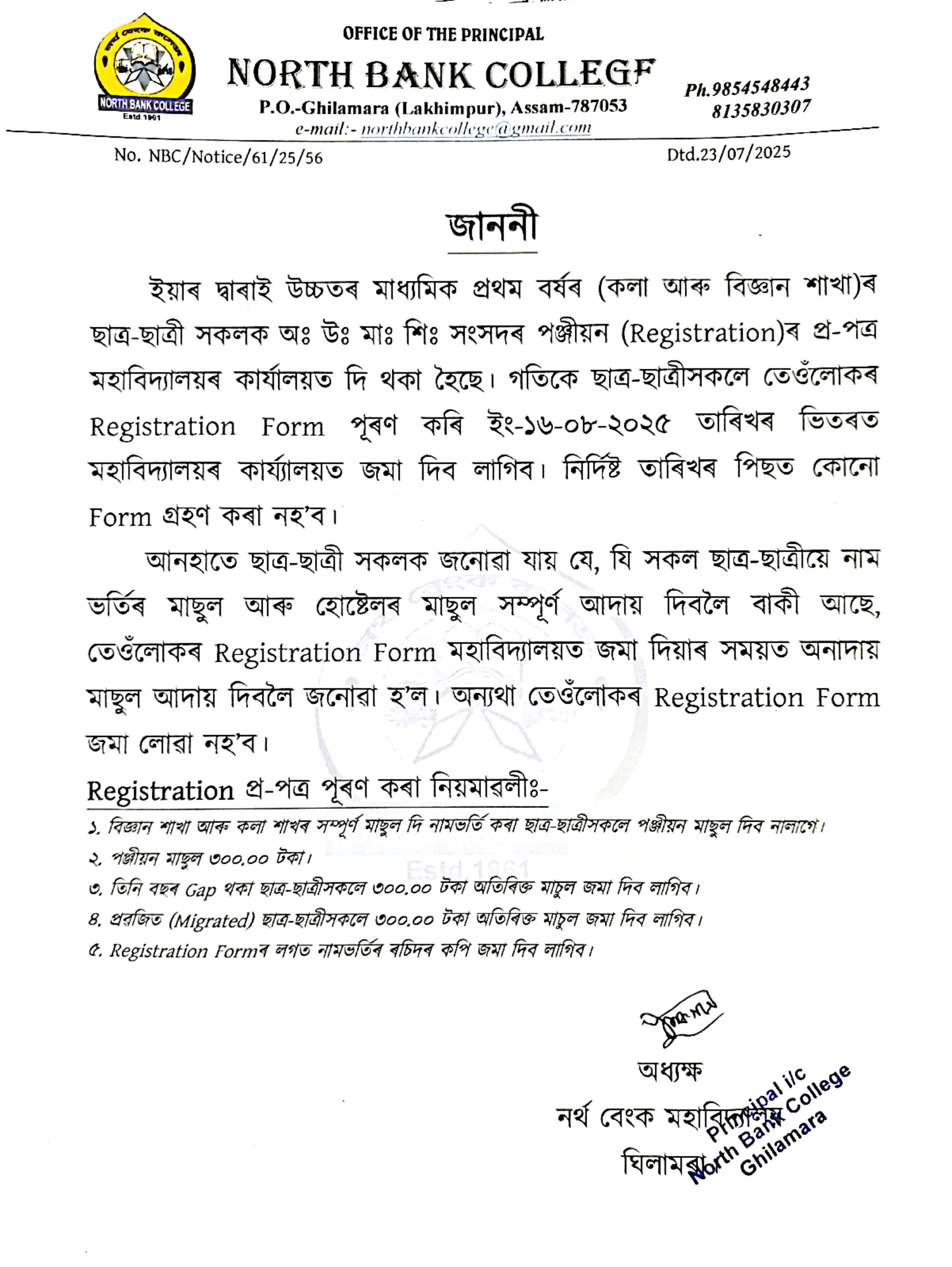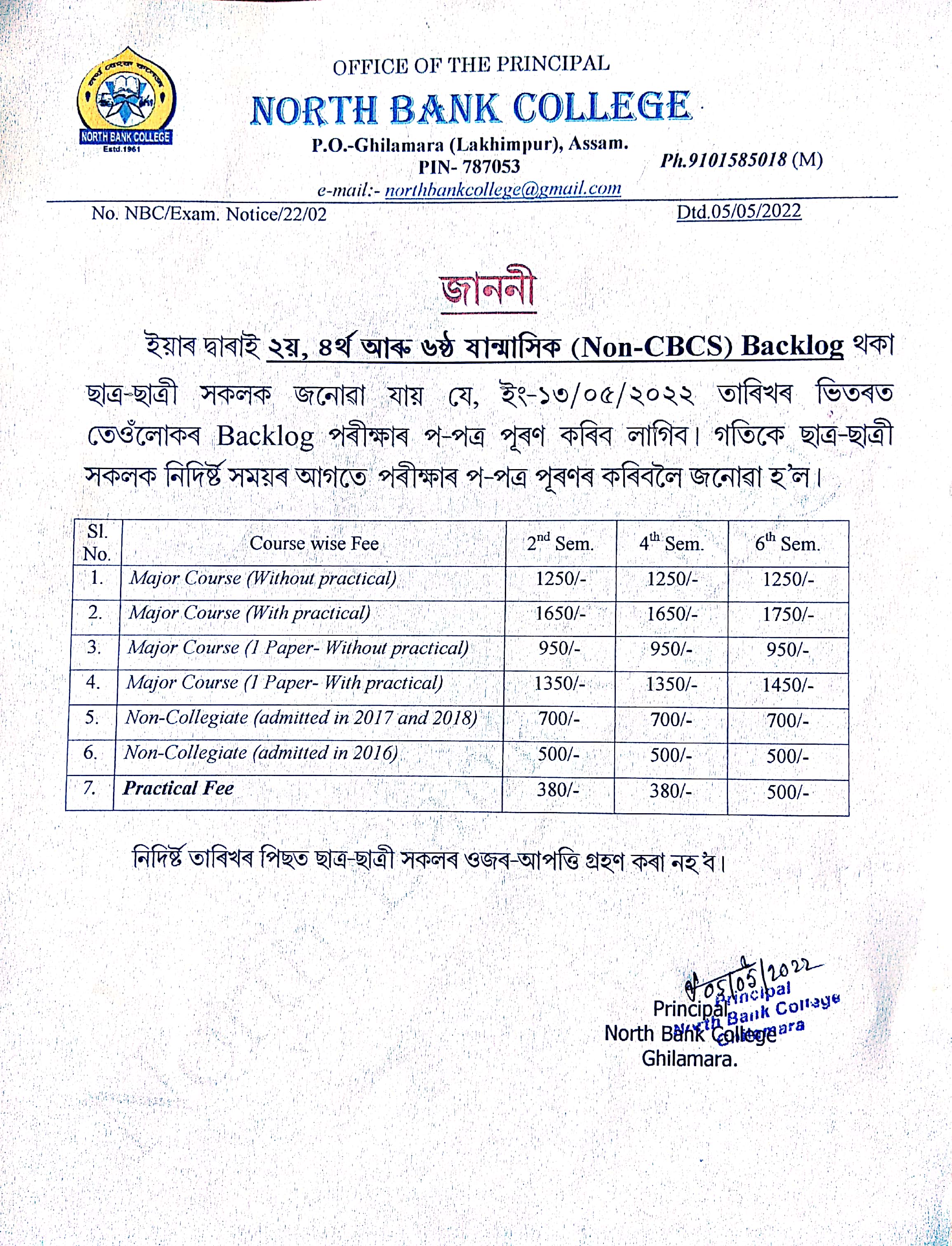 Exam. Form Fill Up Notice 1st, 3rd and 5t Sem (CBCS) Backlog-2025