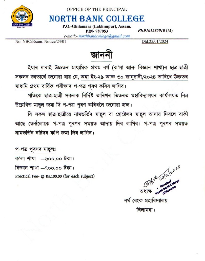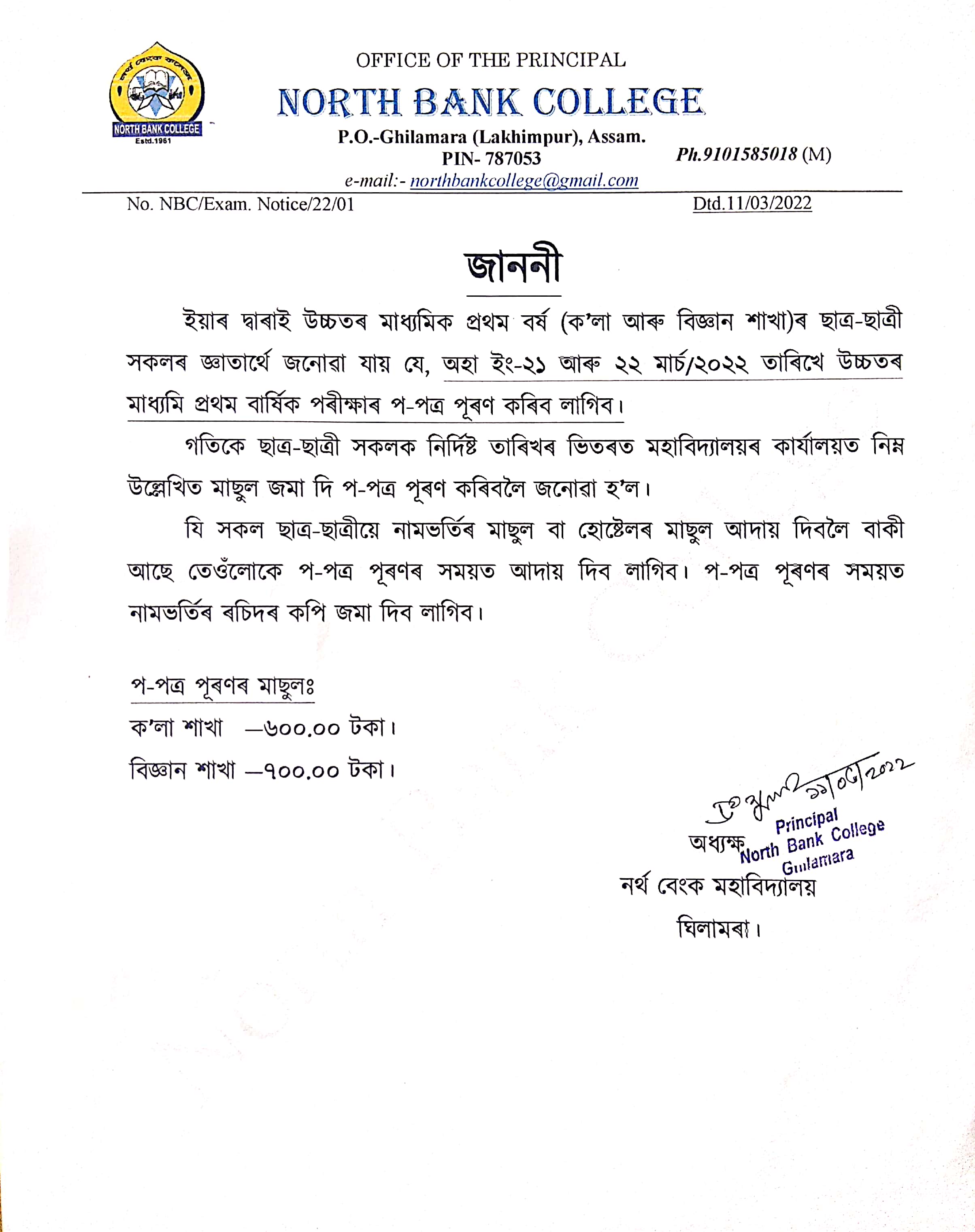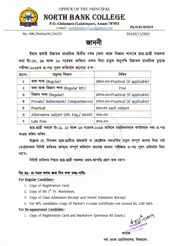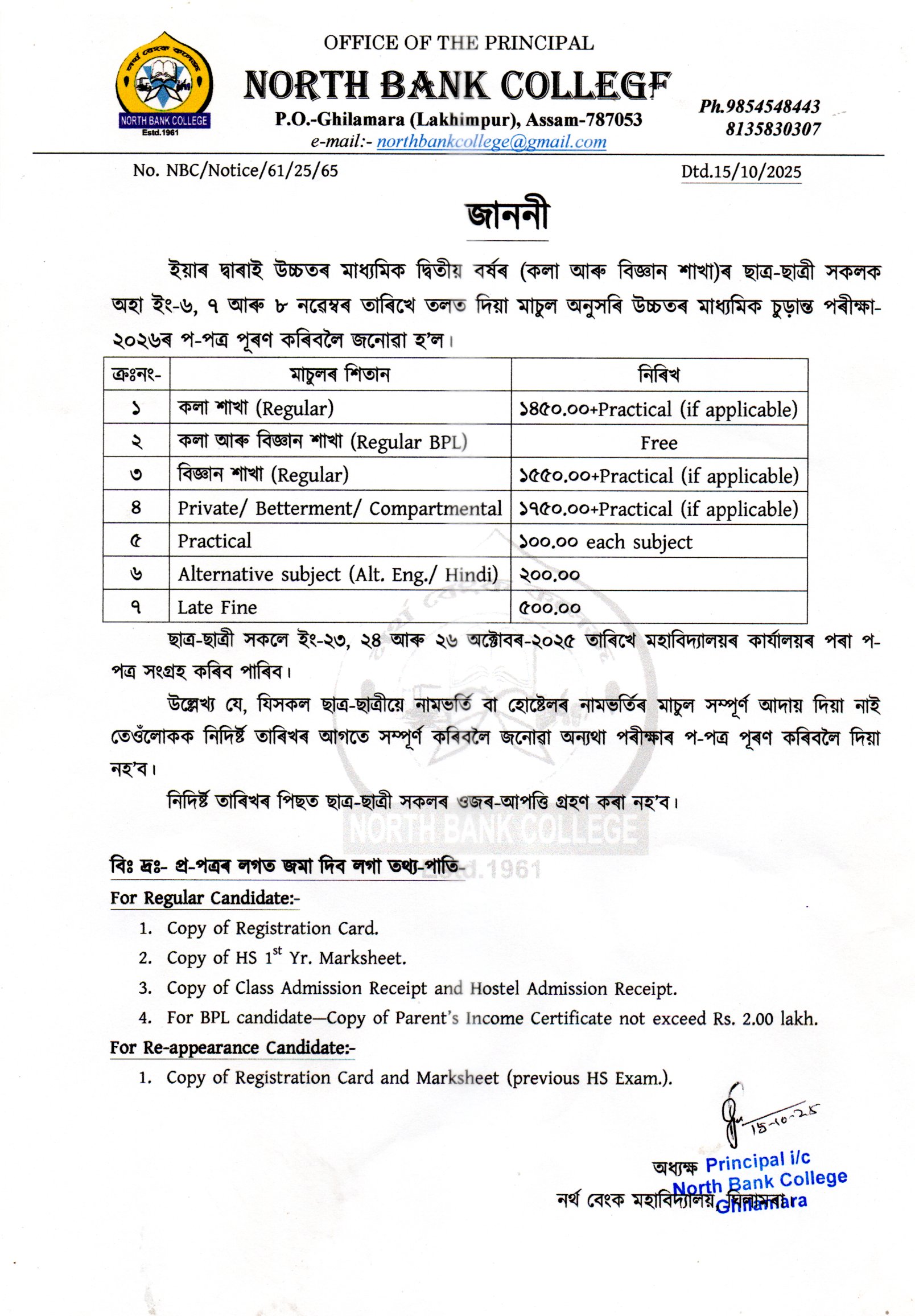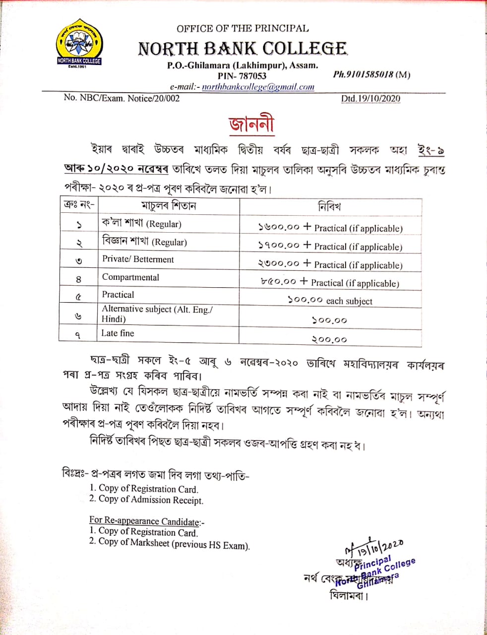 HS 2nd Yr Exam Form Fill Up Notice-2025