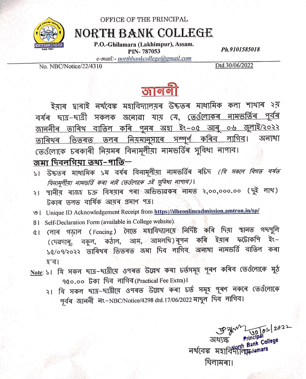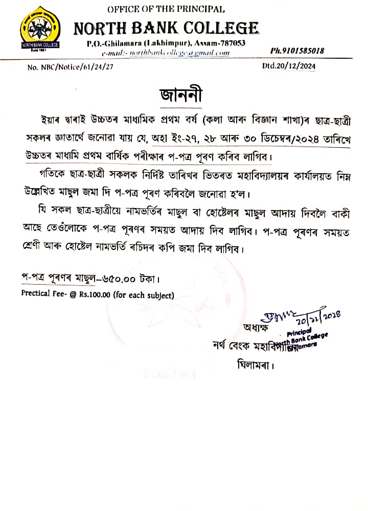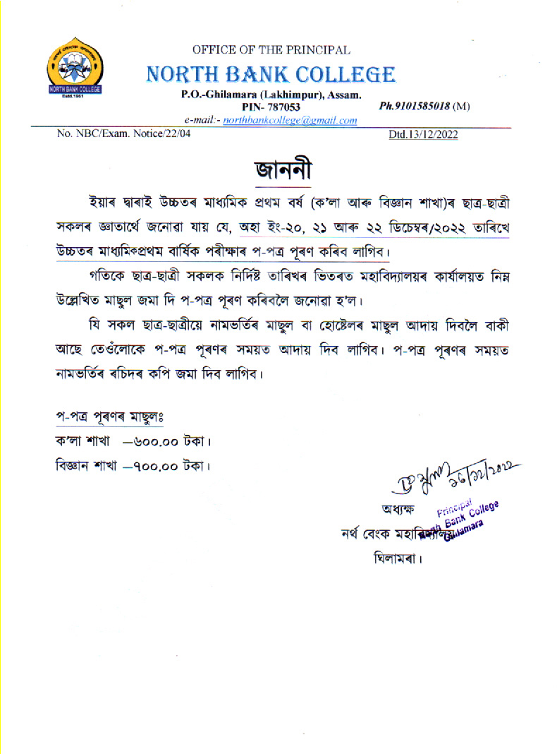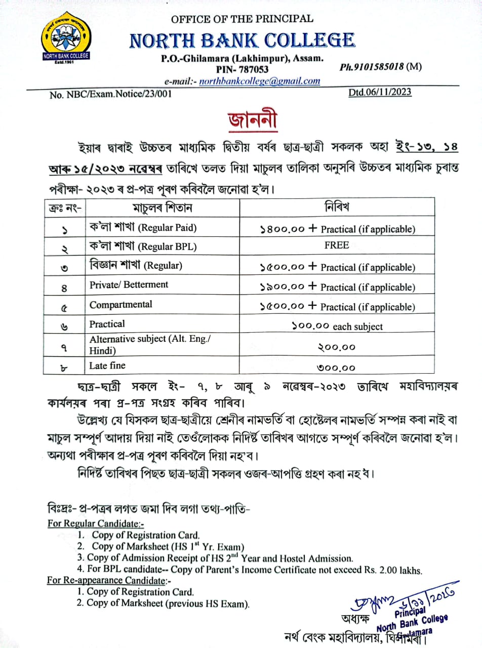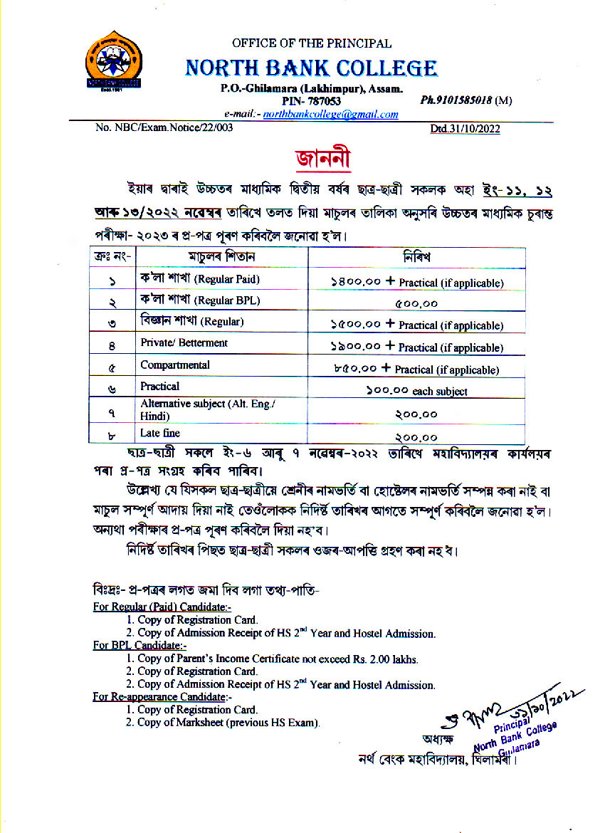 HS 2nd Yr Exam Form Fill Up Notice-2025