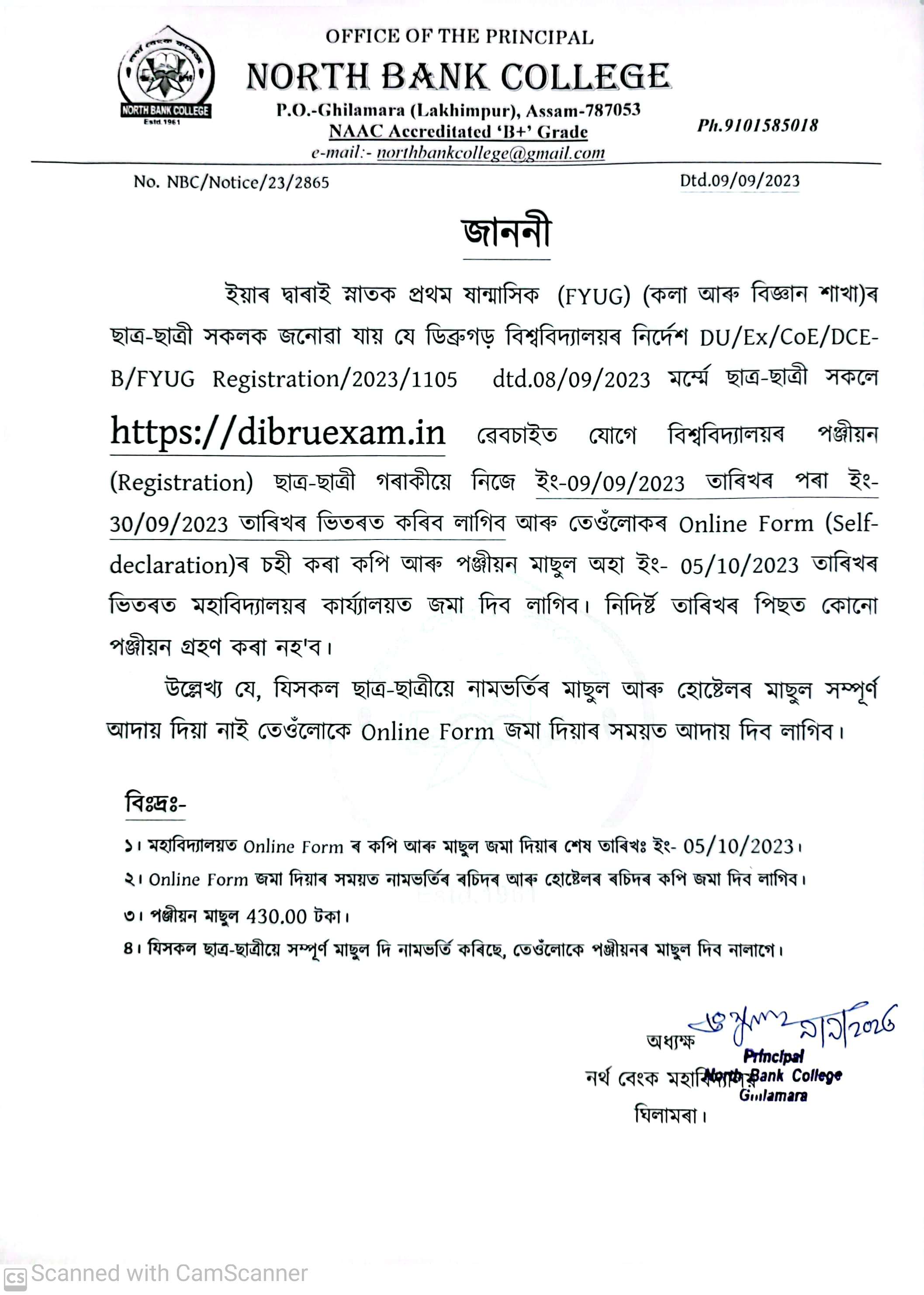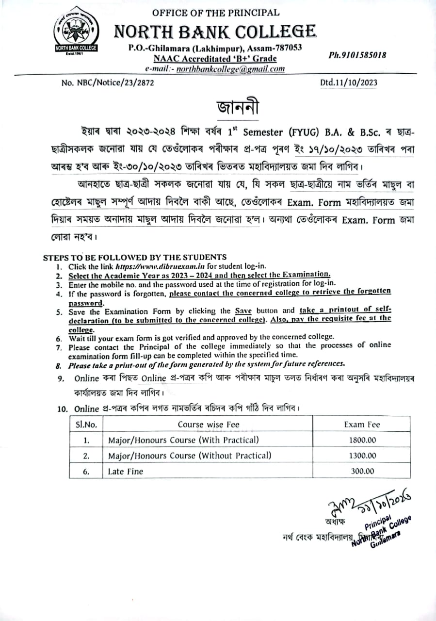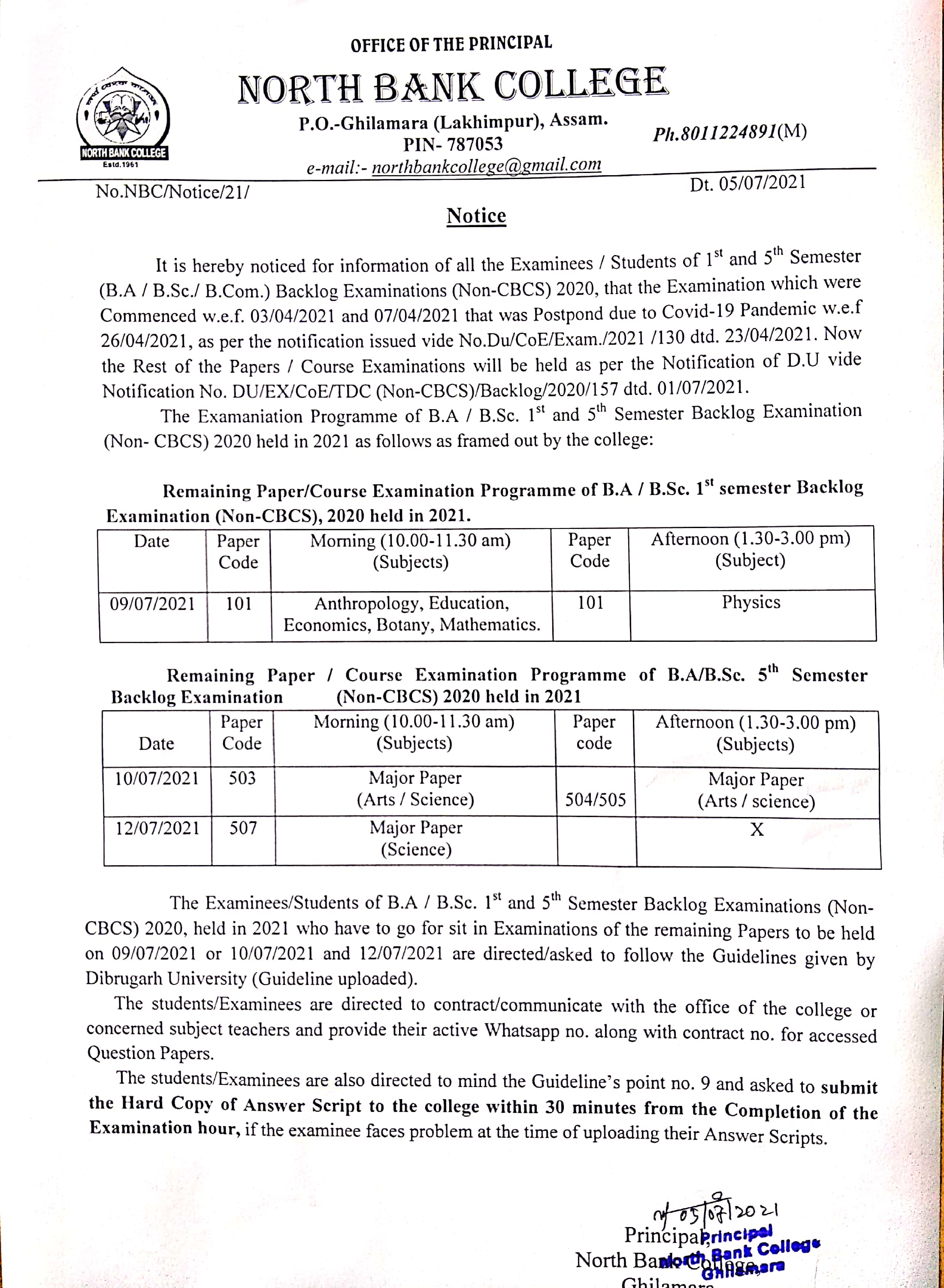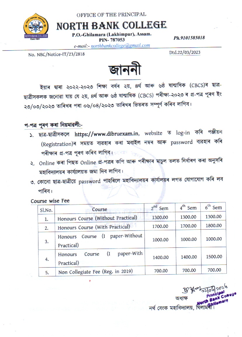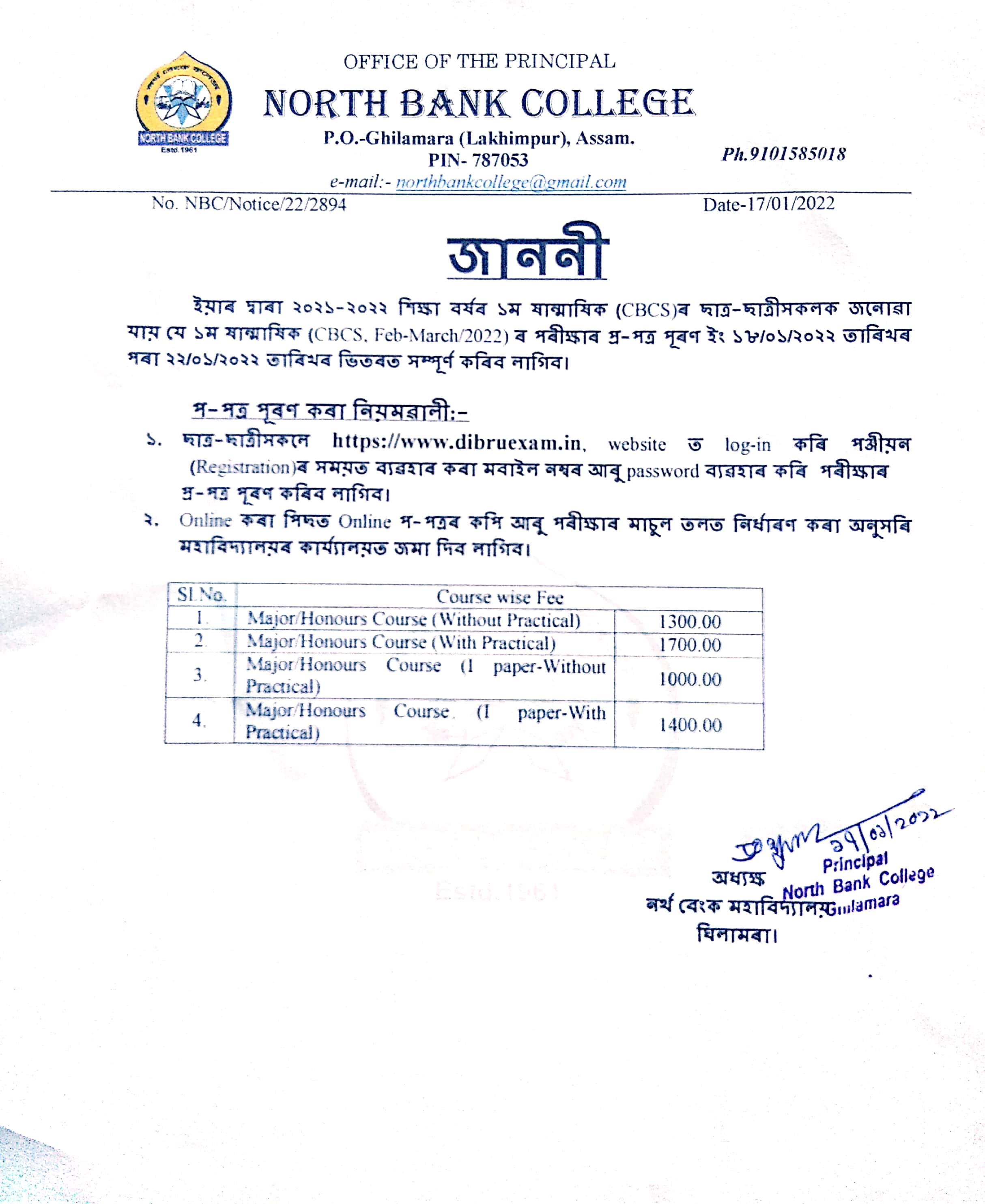 Exam. Form Fillup Notice for 1st, 3rd and 5th Sem (Non CBCS) 2020