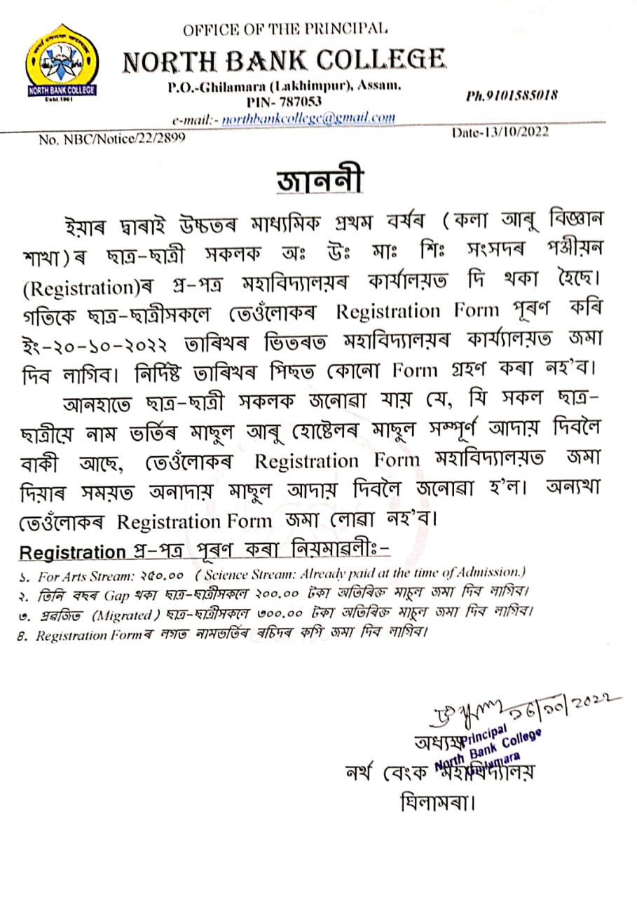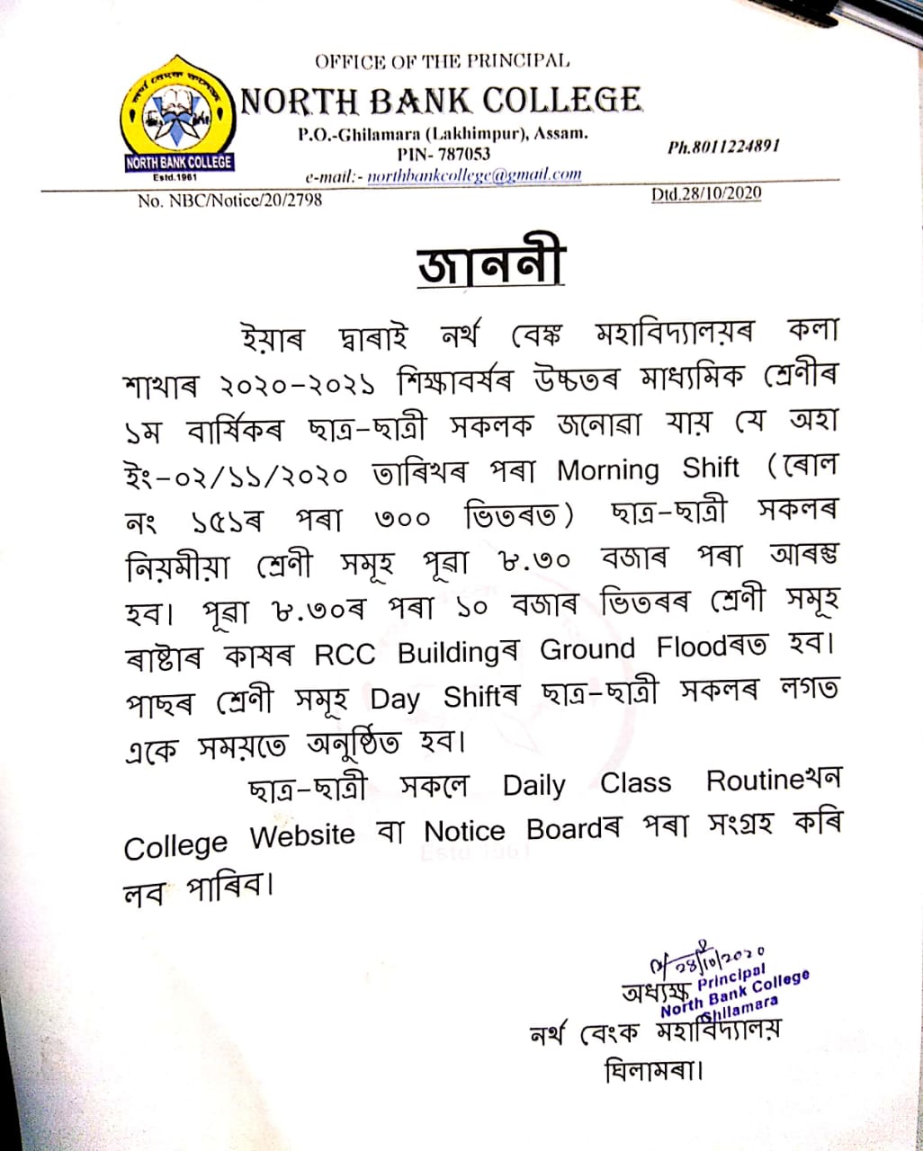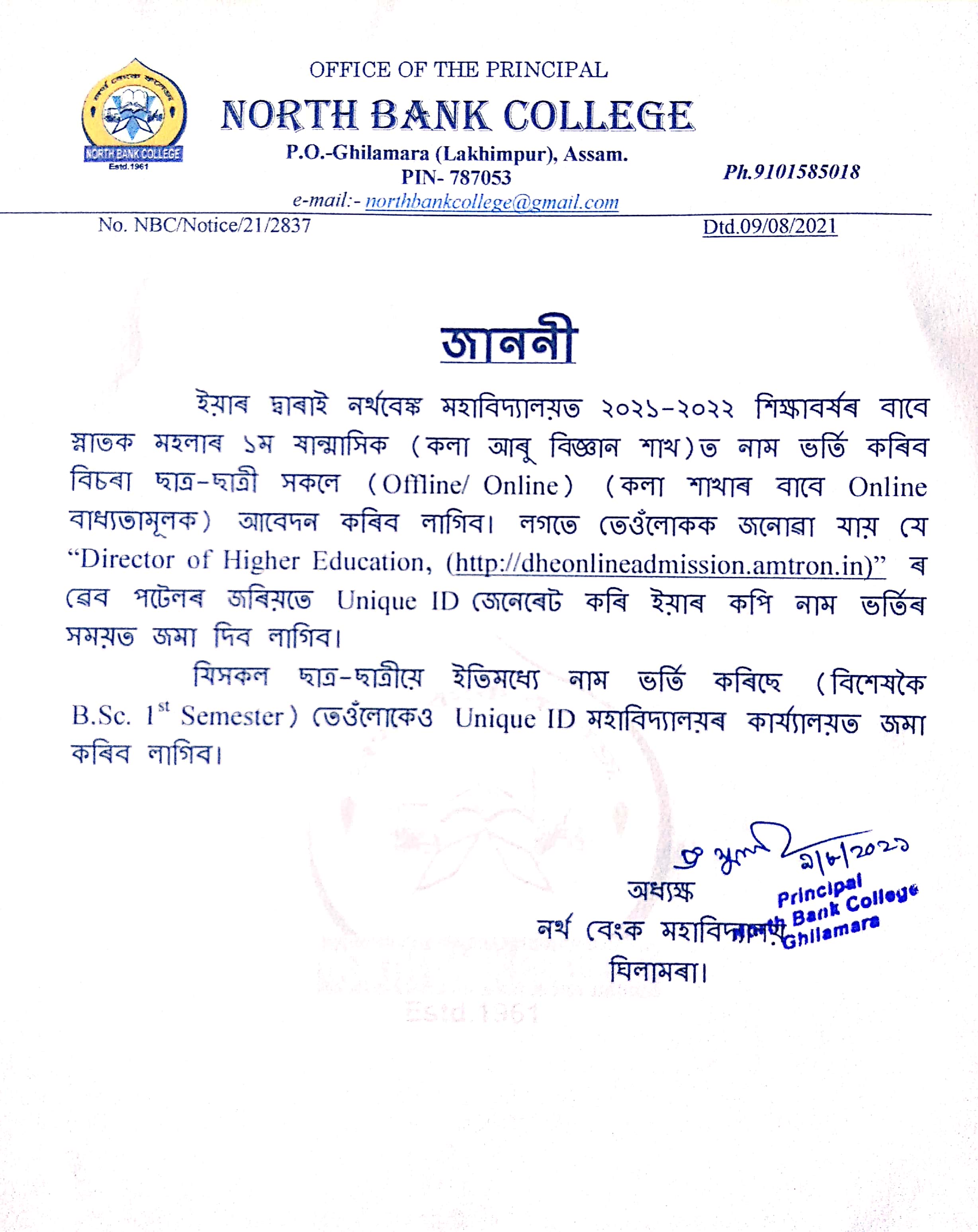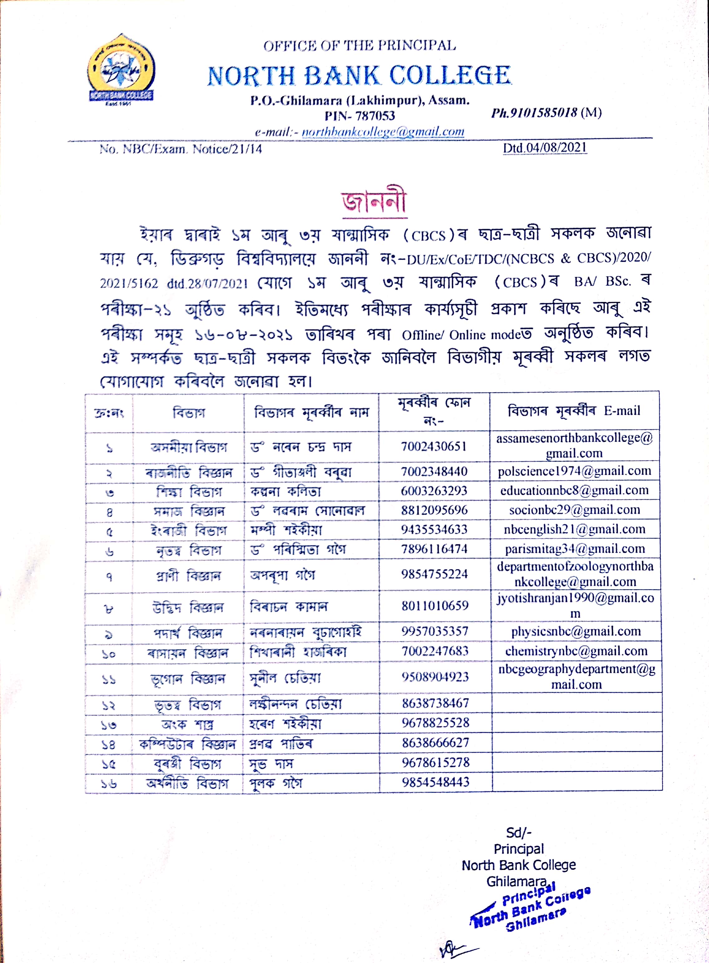 Exam. Form Fillup Notice for 1st, 3rd and 5th Sem (Non CBCS) 2020