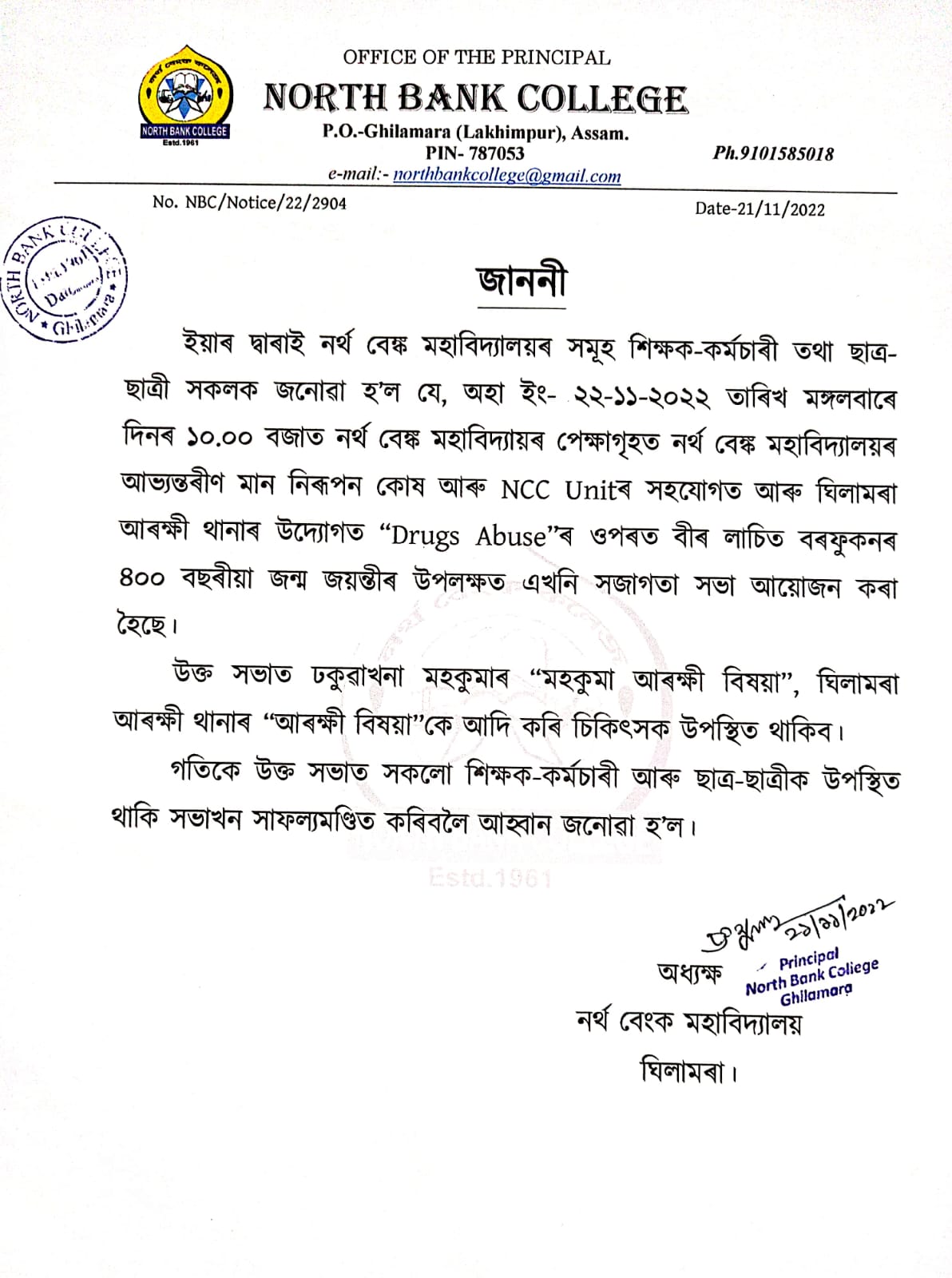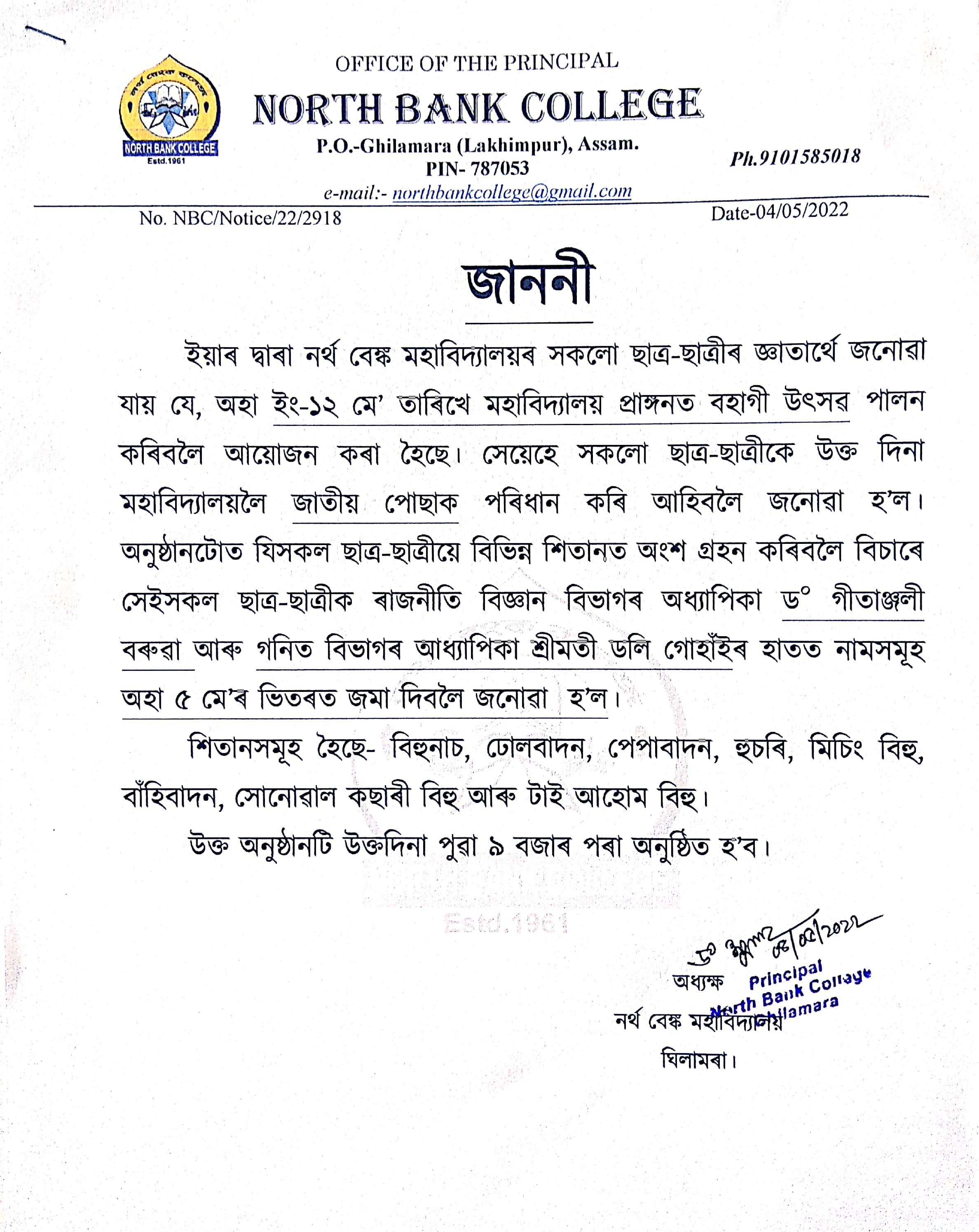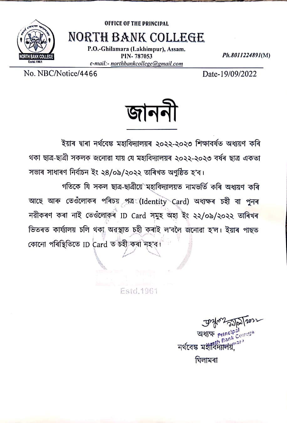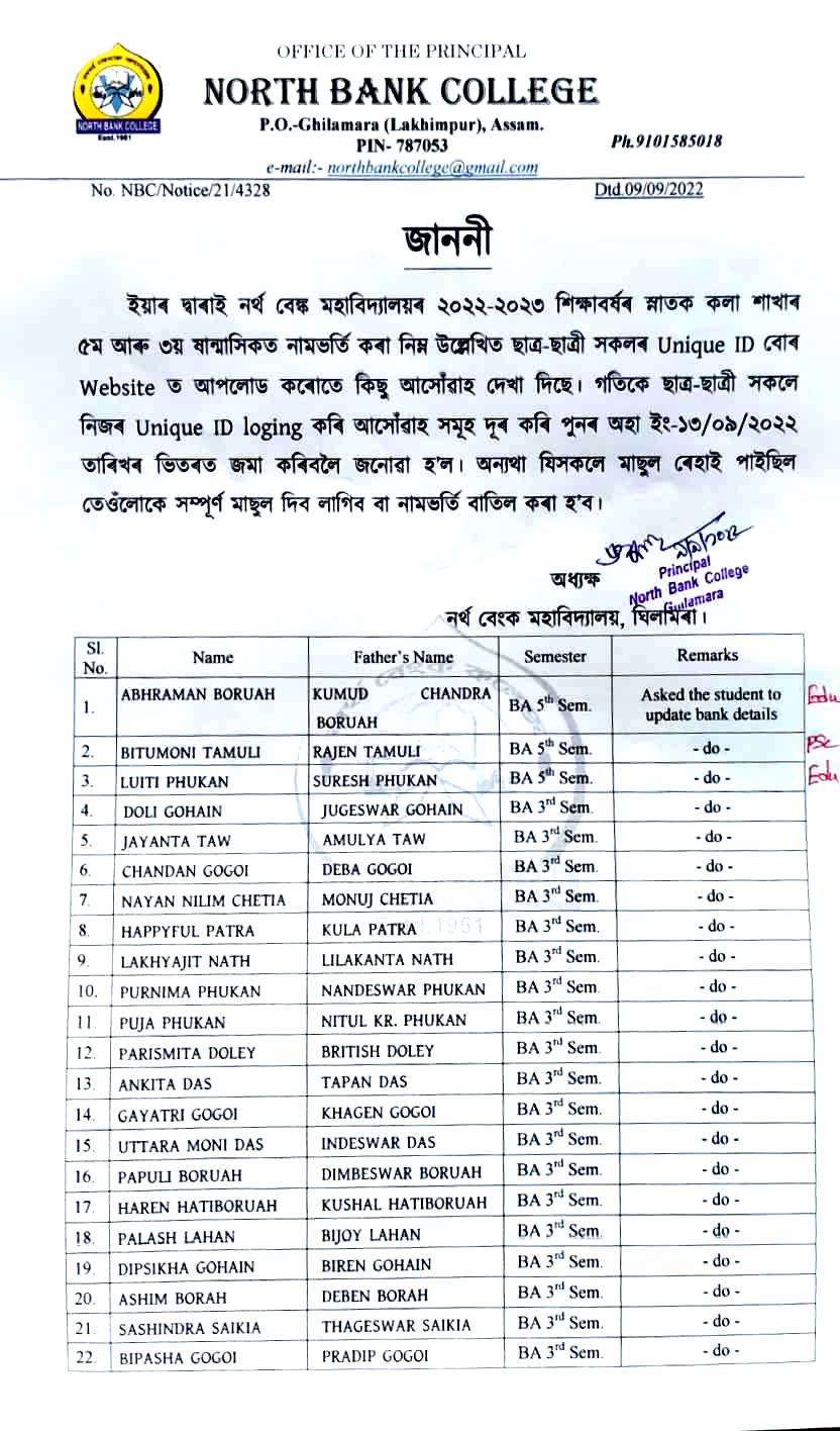 Exam. Form Fillup Notice for 1st, 3rd and 5th Sem (Non CBCS) 2020