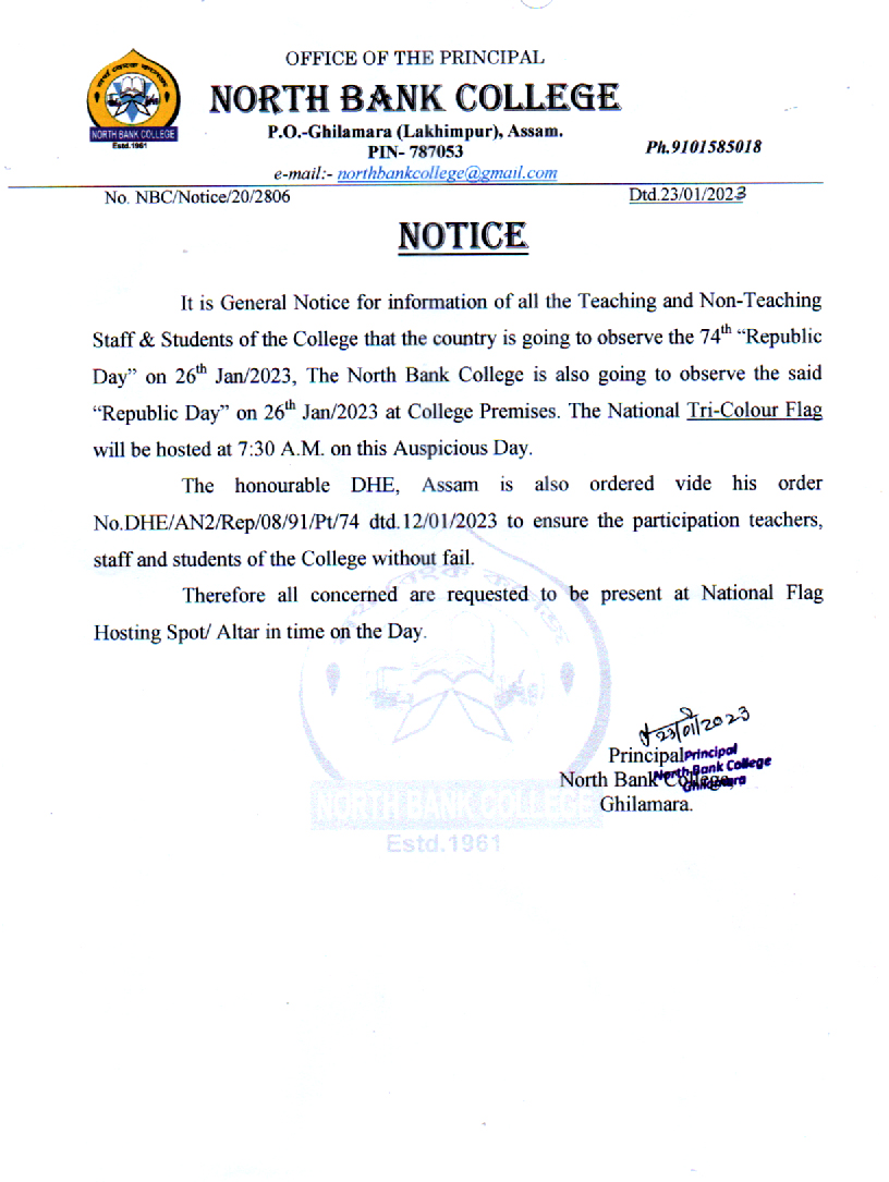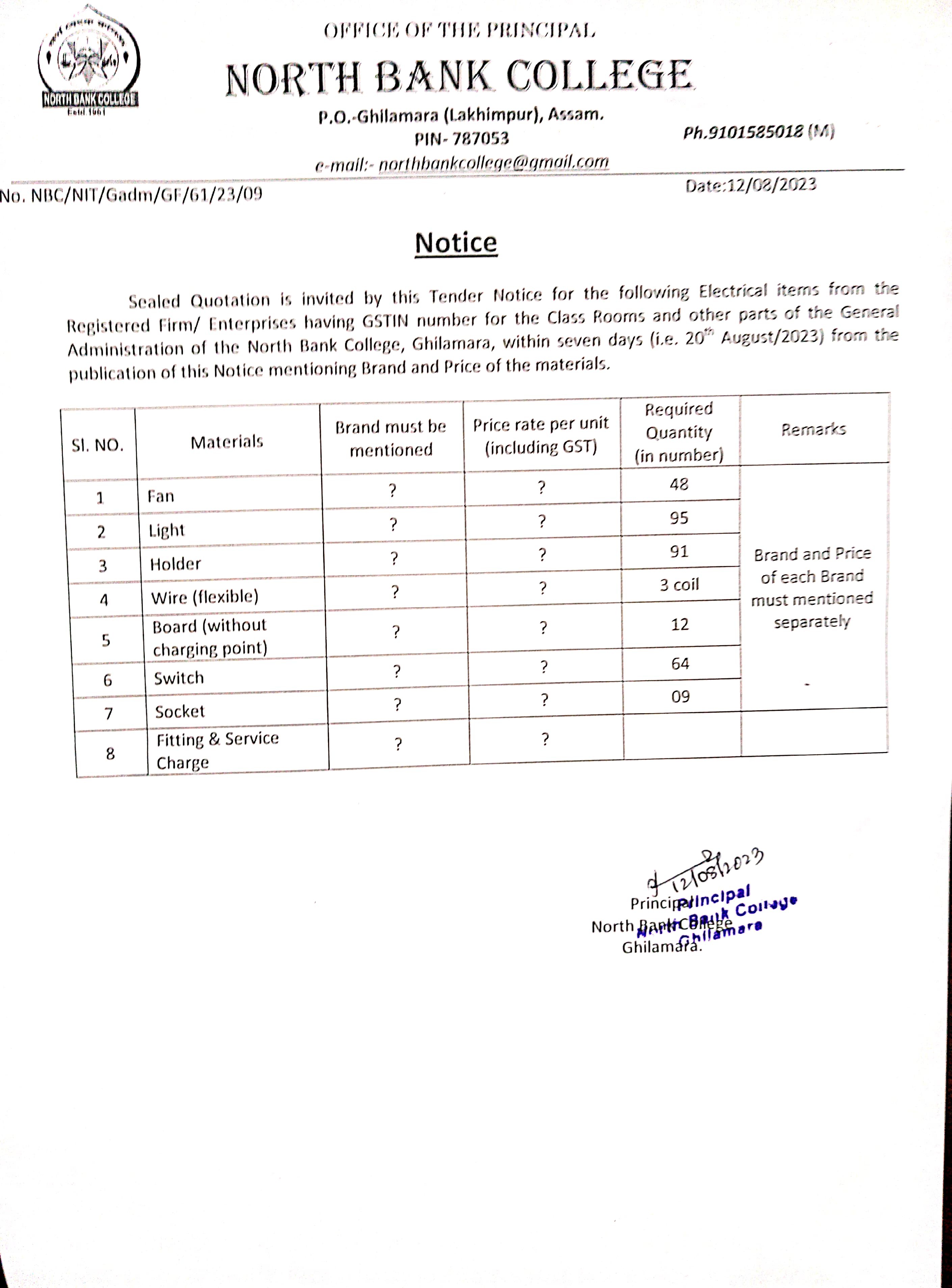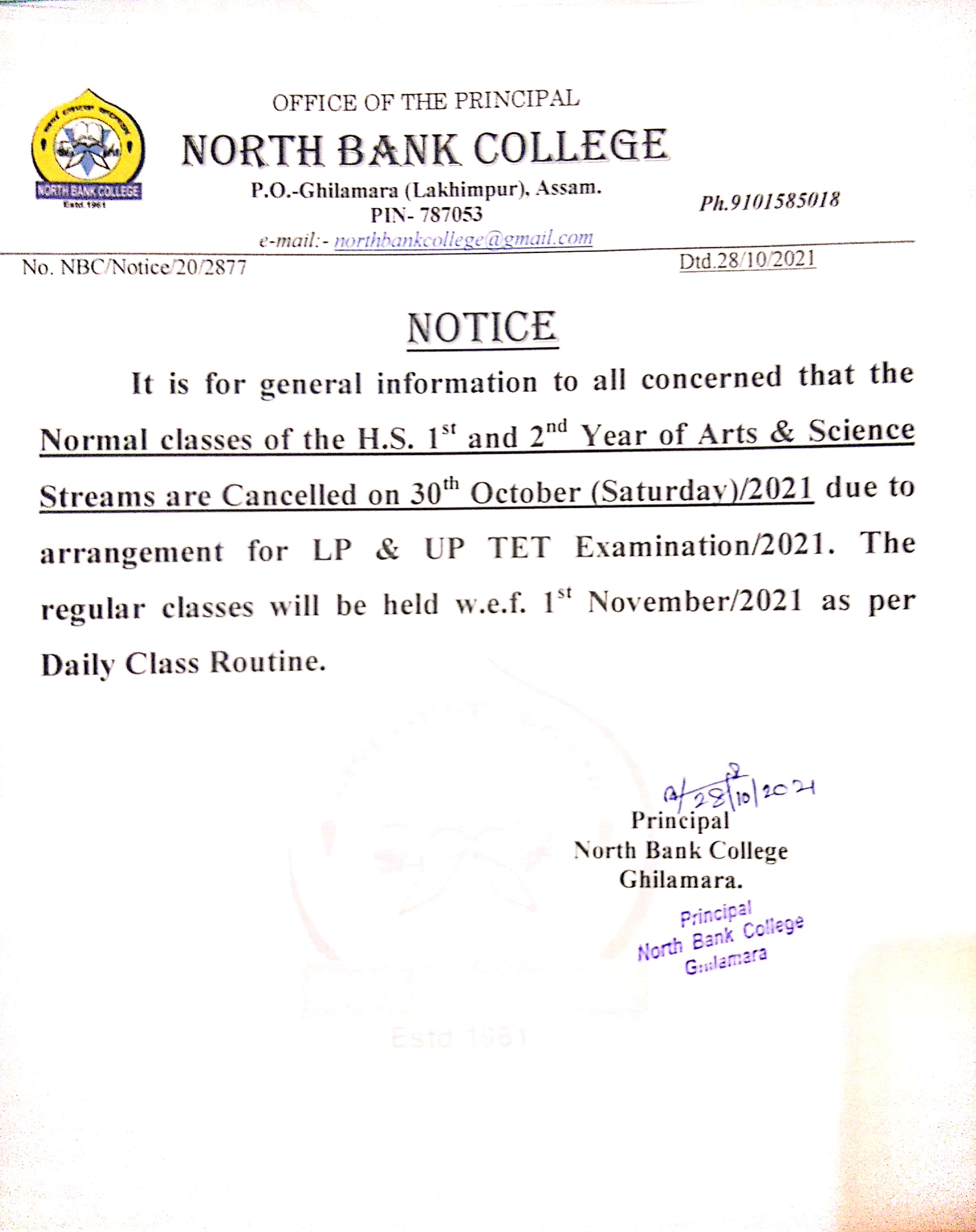 Notification for 1st Sessional Exam (1st, 3rd and 5th Sem)