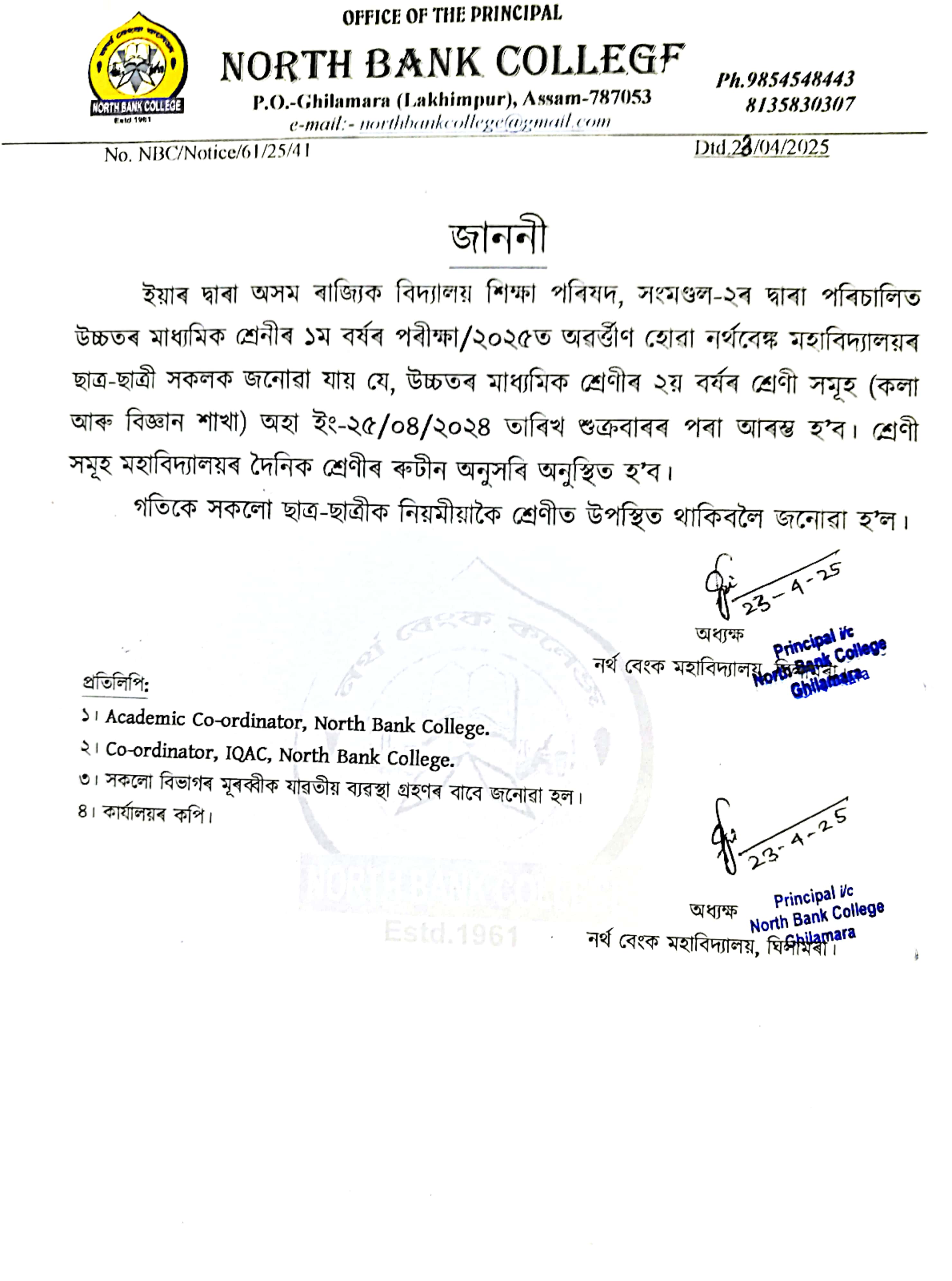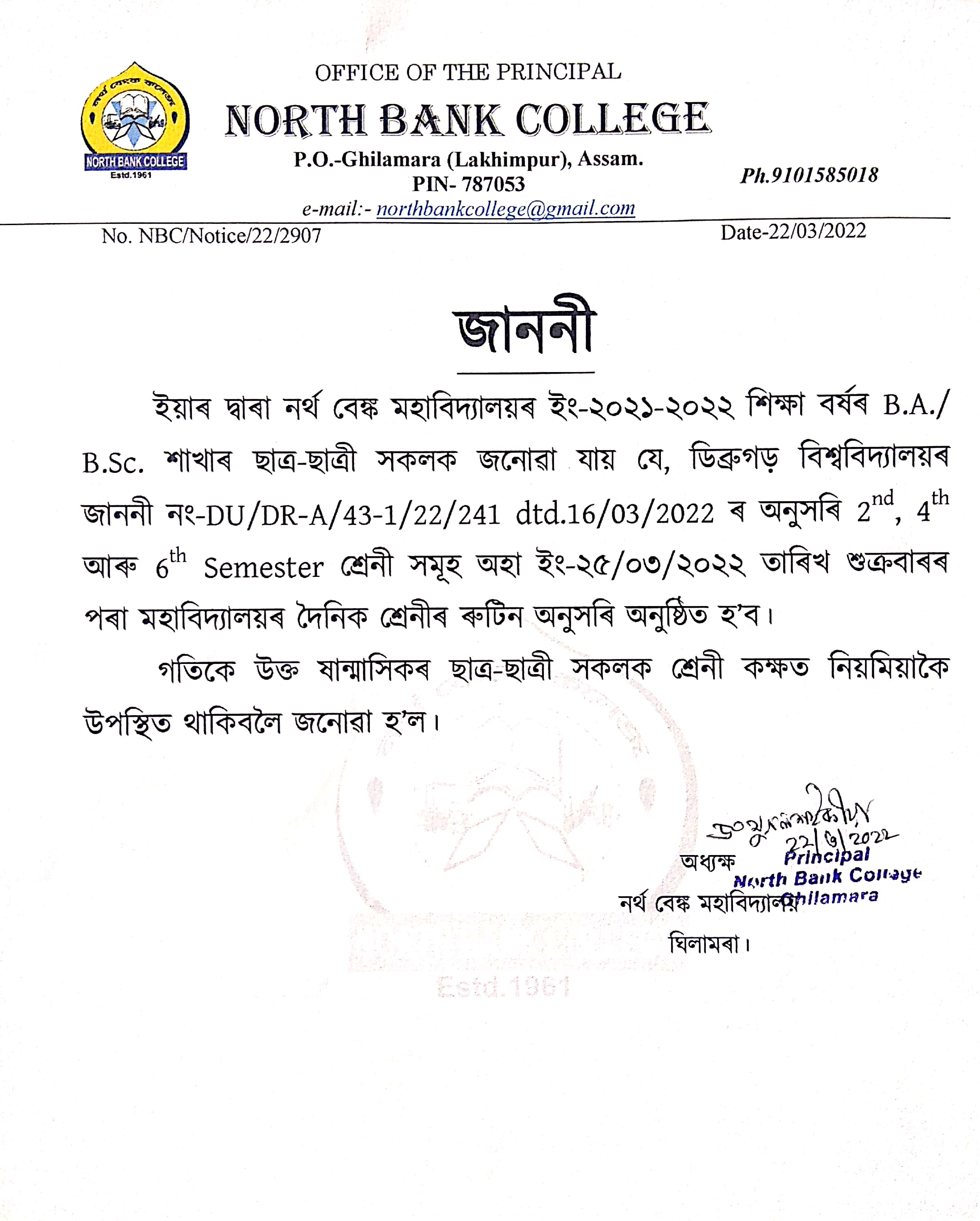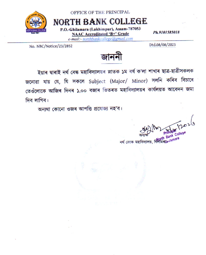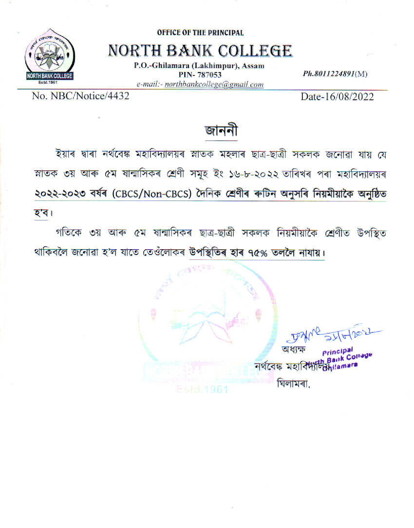 Daily Class Notice for BA and BSc 3rd Sem-2025
