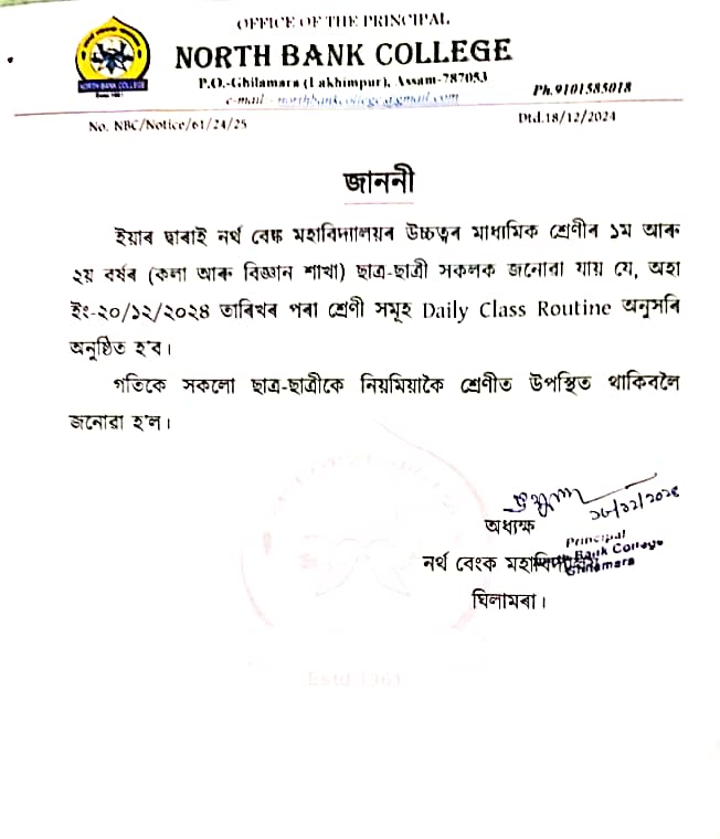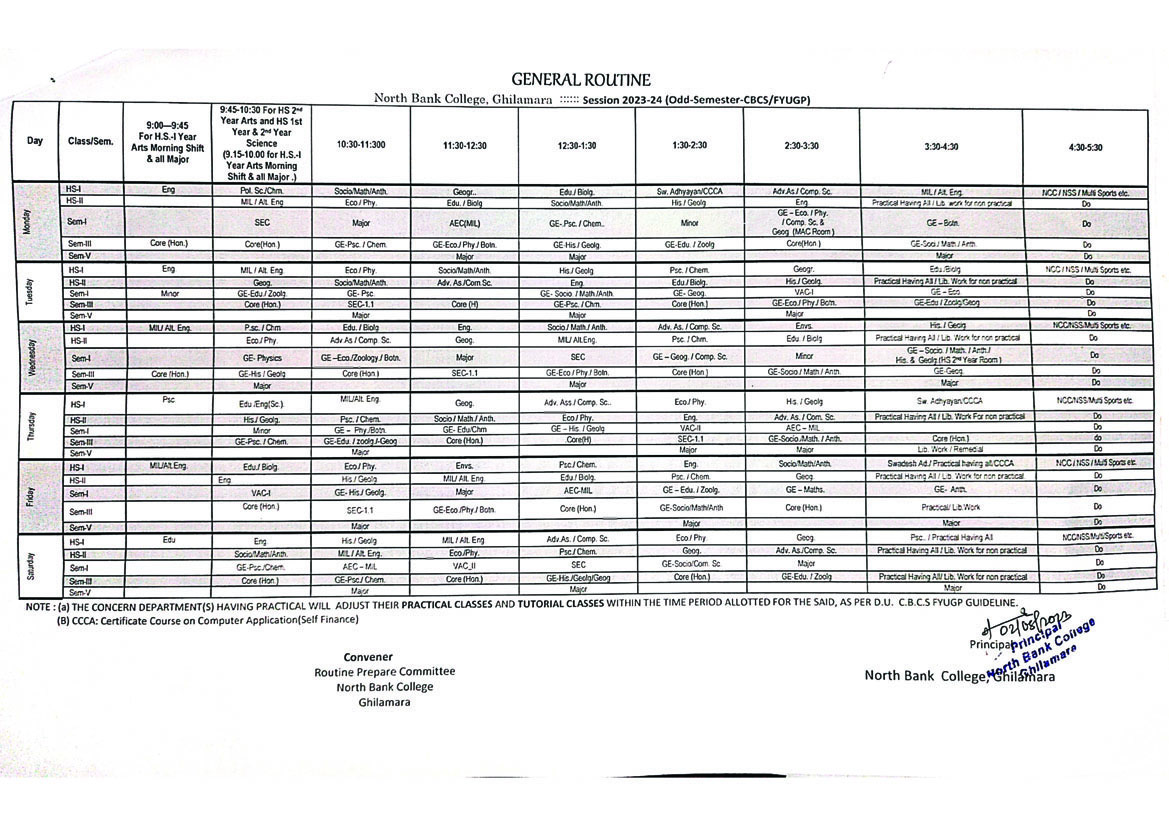 Daily Class Routine-2025 of HS and FYUGP (Odd Sem)