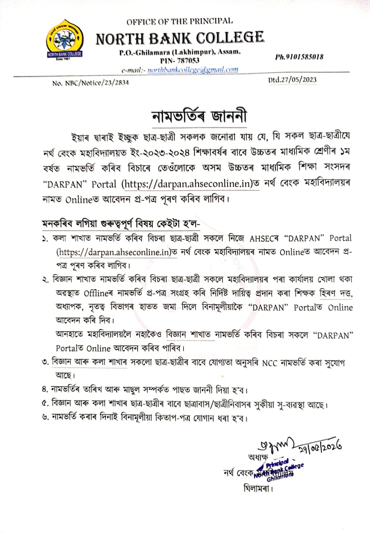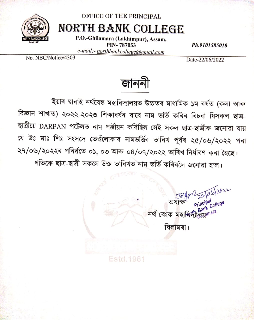 Notification regarding the re-opening of the DARPAN Admission Portal for students of the 2025–26 academic session.