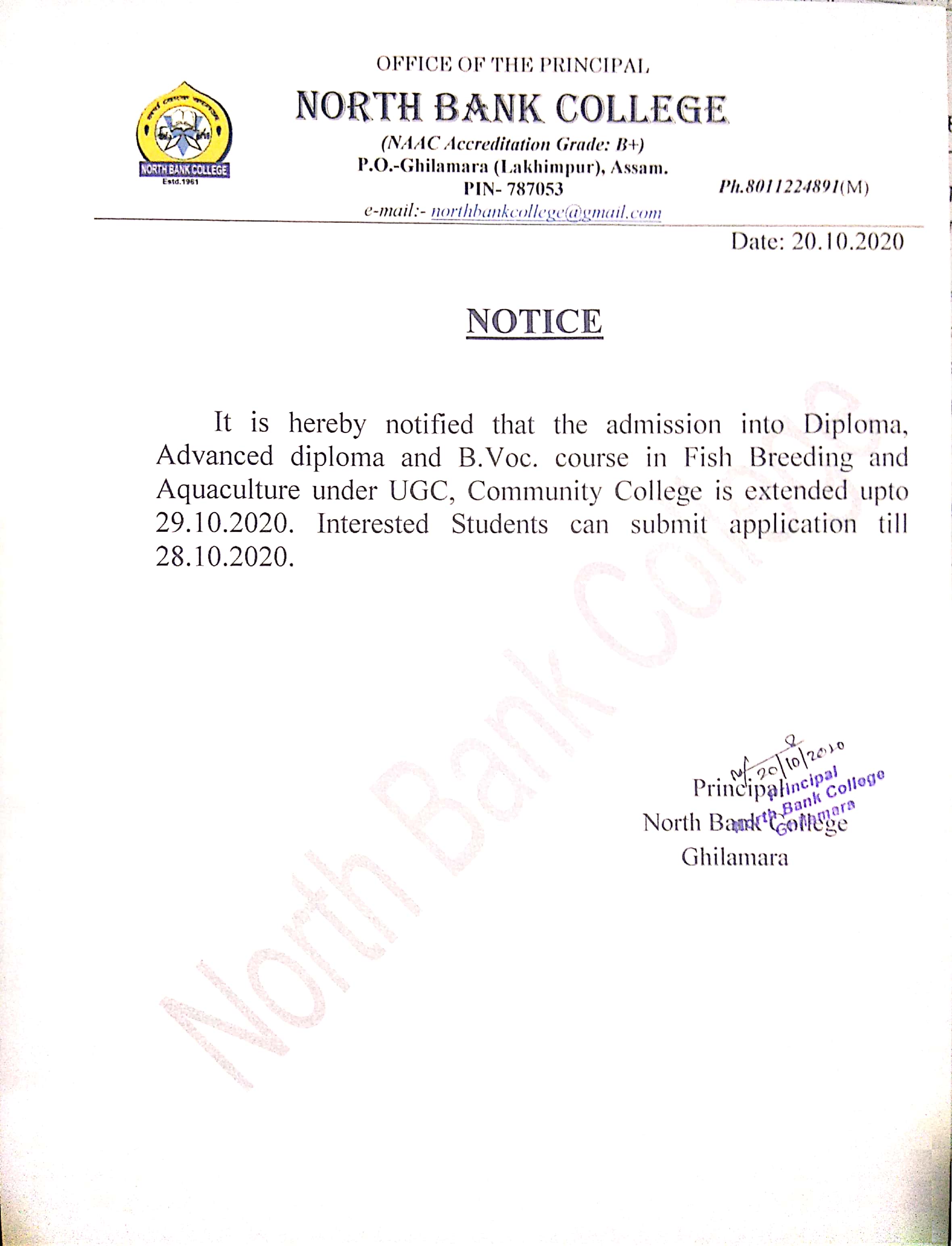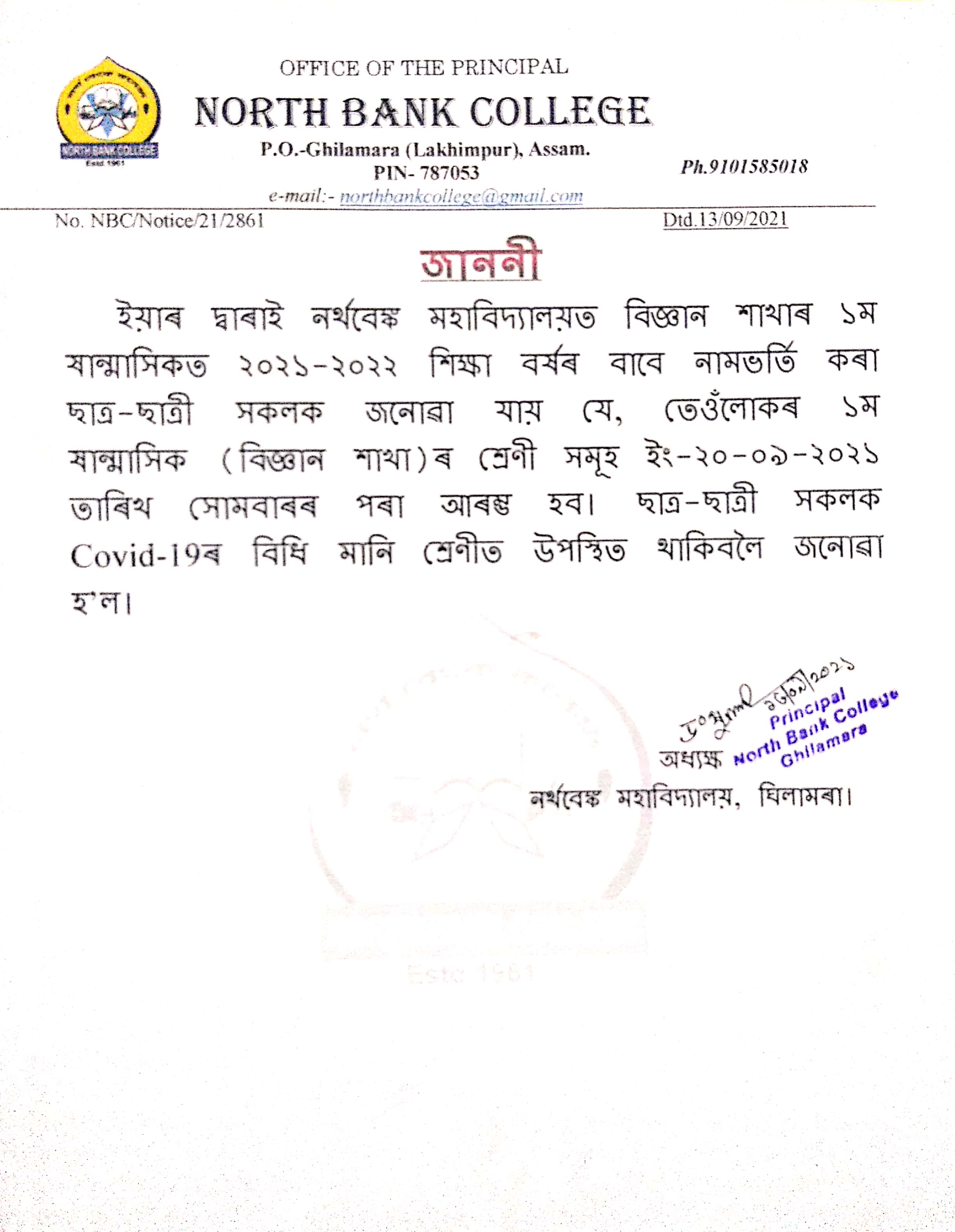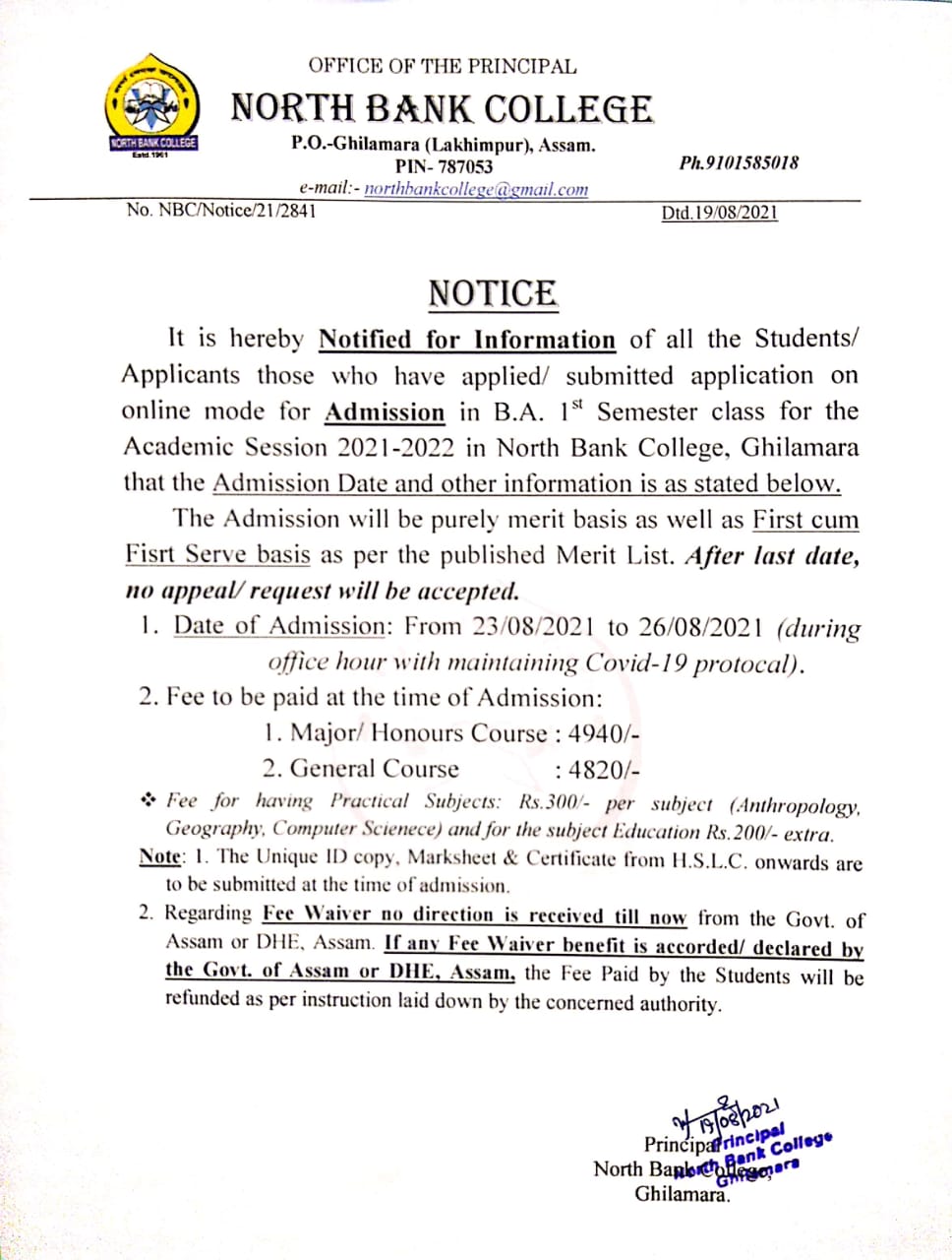 Notification for Complete of Admission Fee of B.Sc. 1st Sem.-2020
