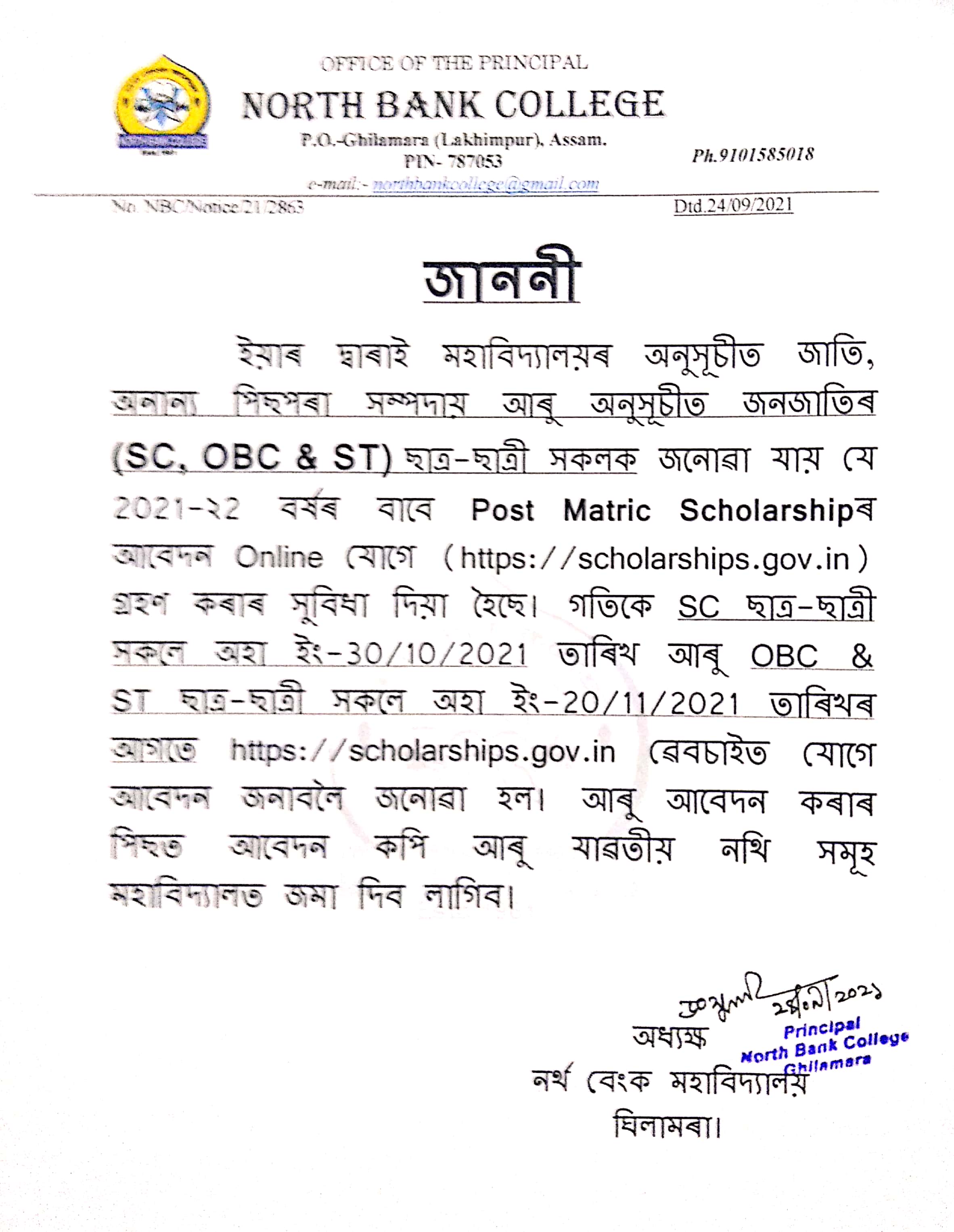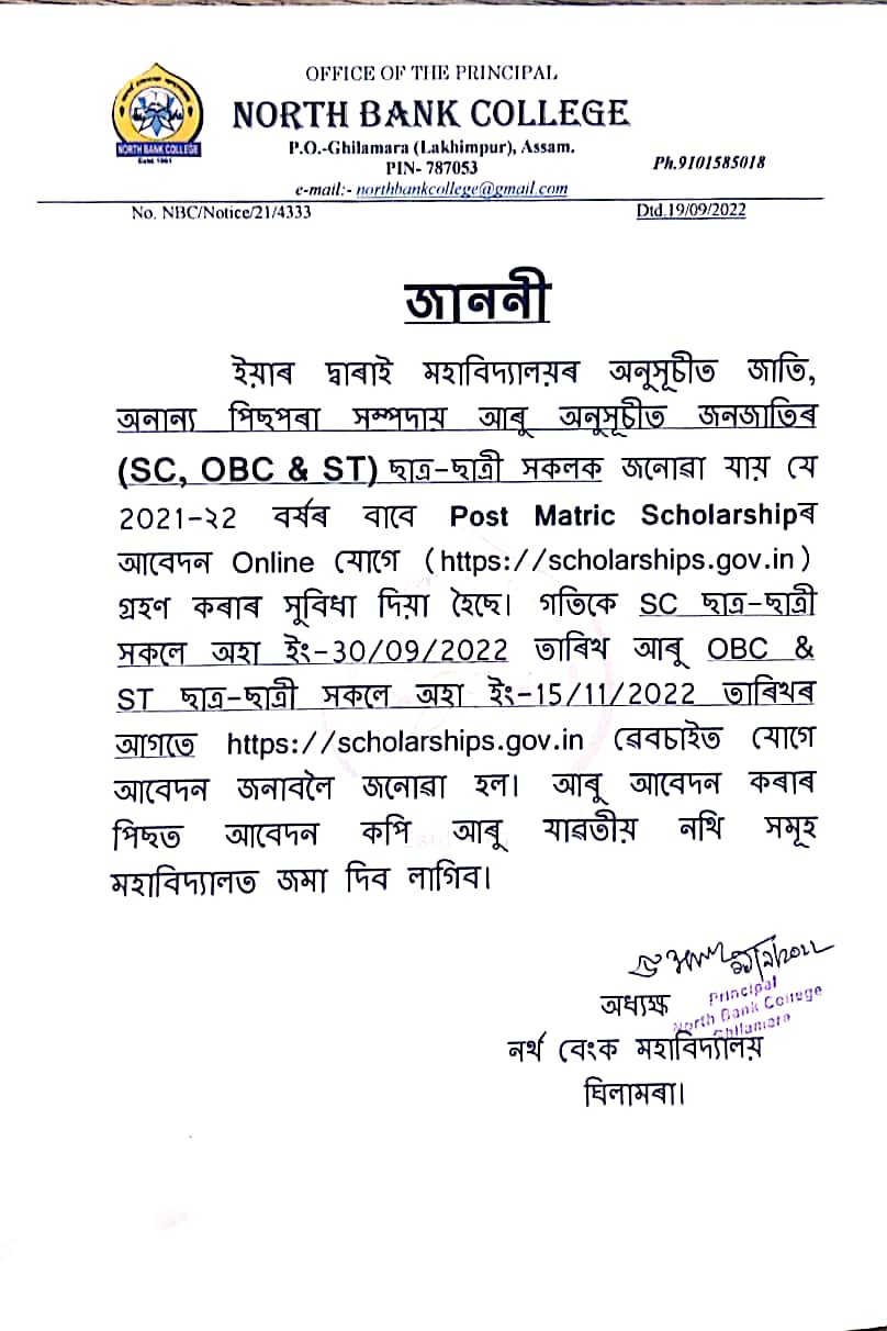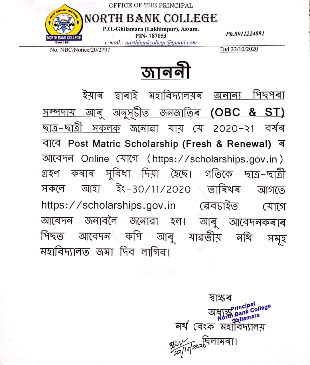 SCHOLARSHIPS FOR ST STUDENTS OF ASSAM