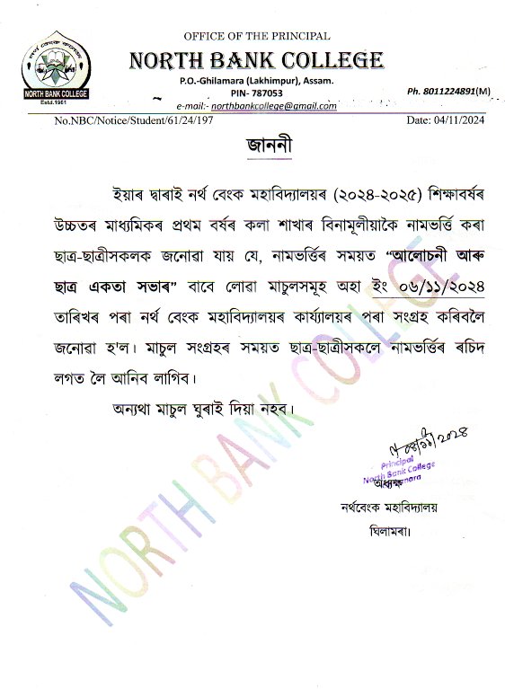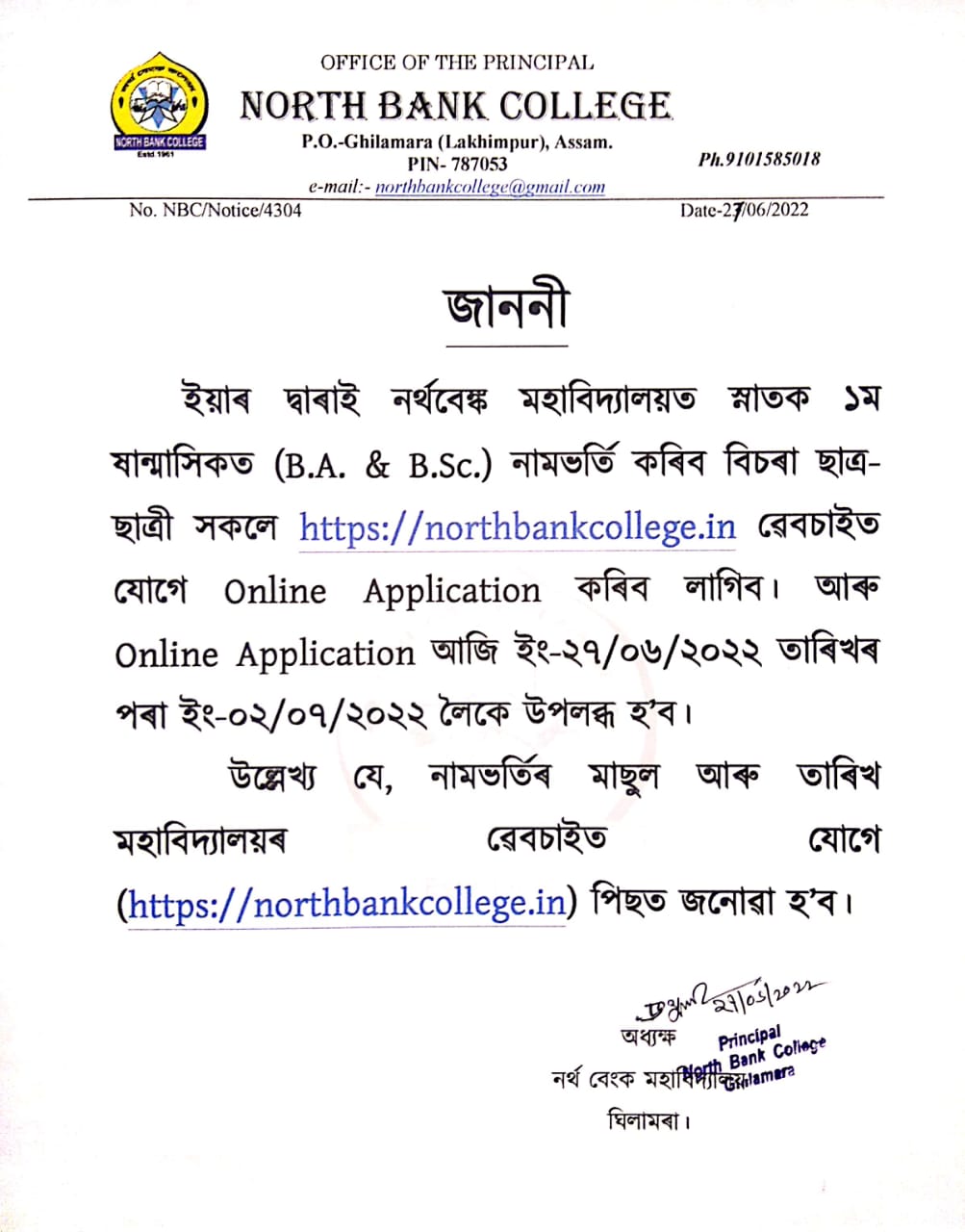 Admission Notice for BA & BSc 3rd Sem and 5th Sem-2025-26