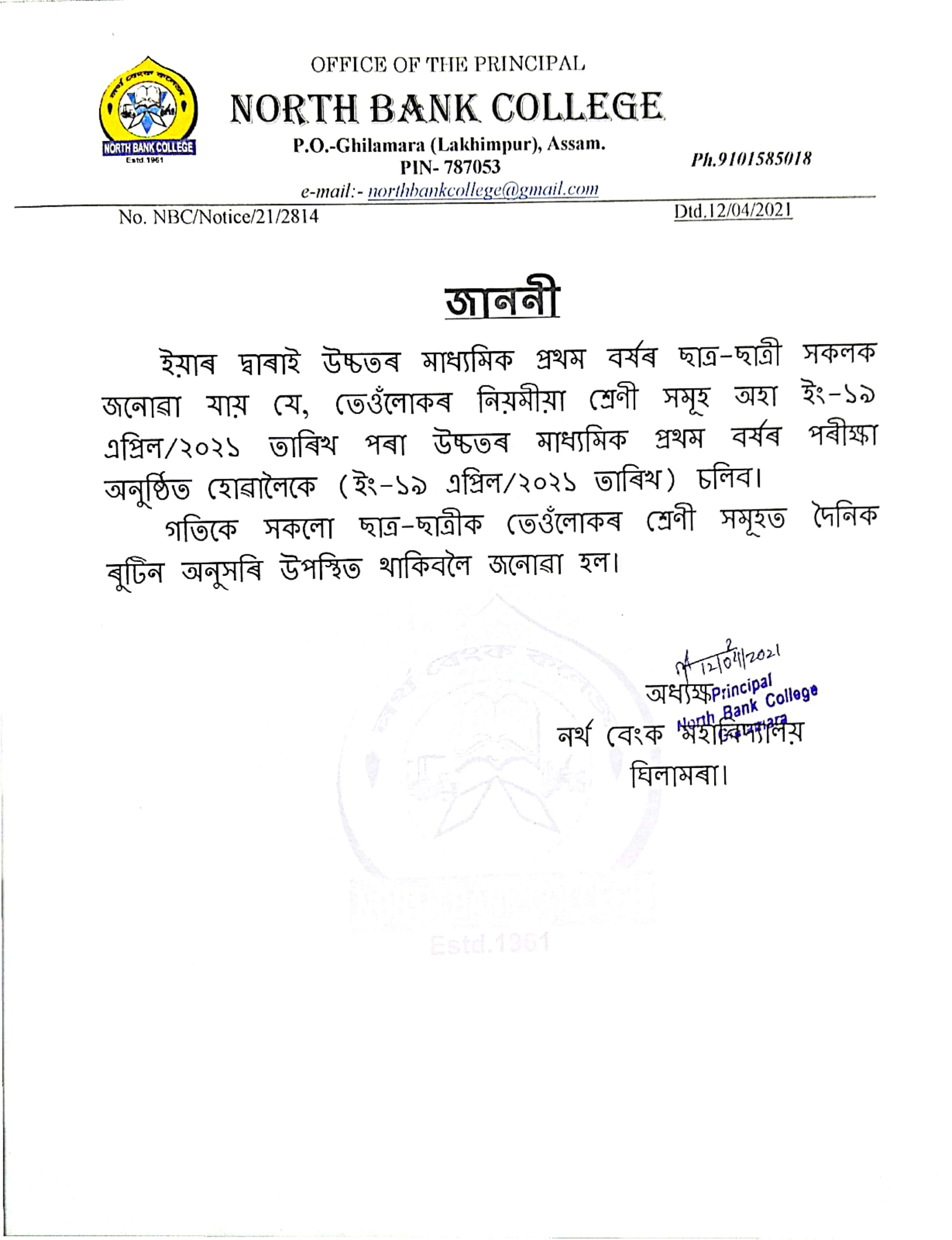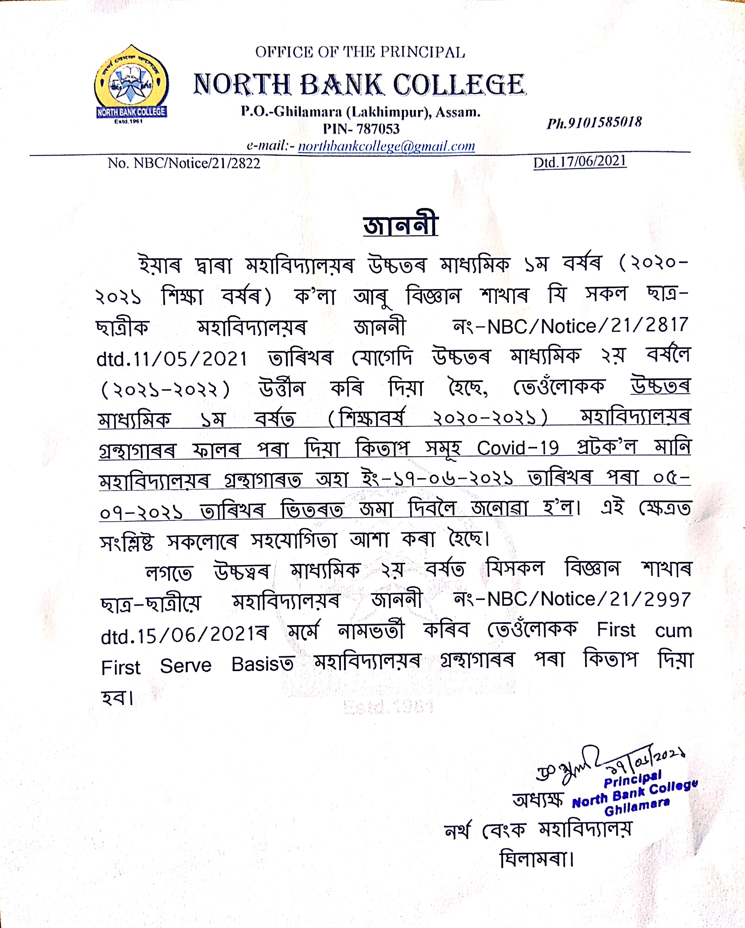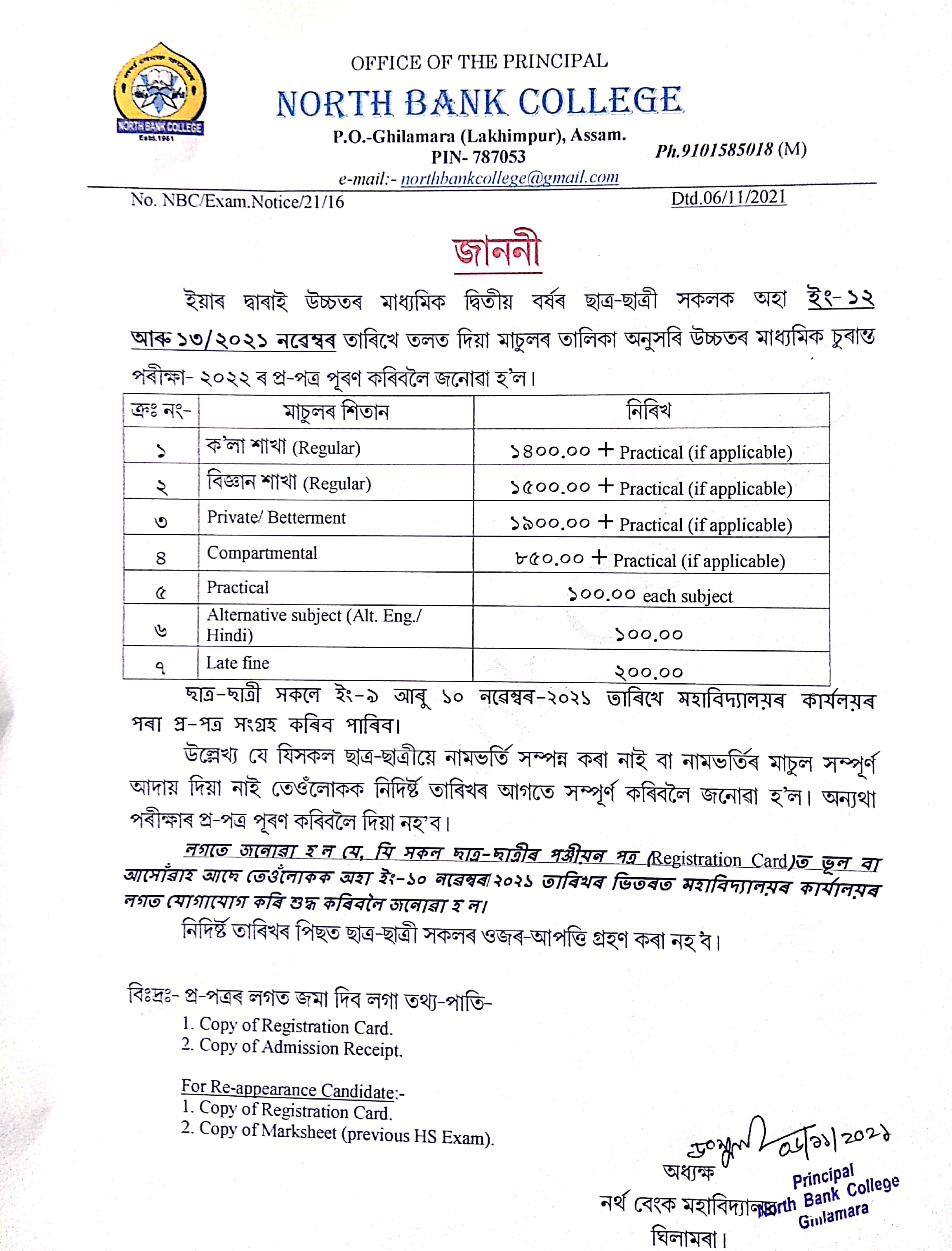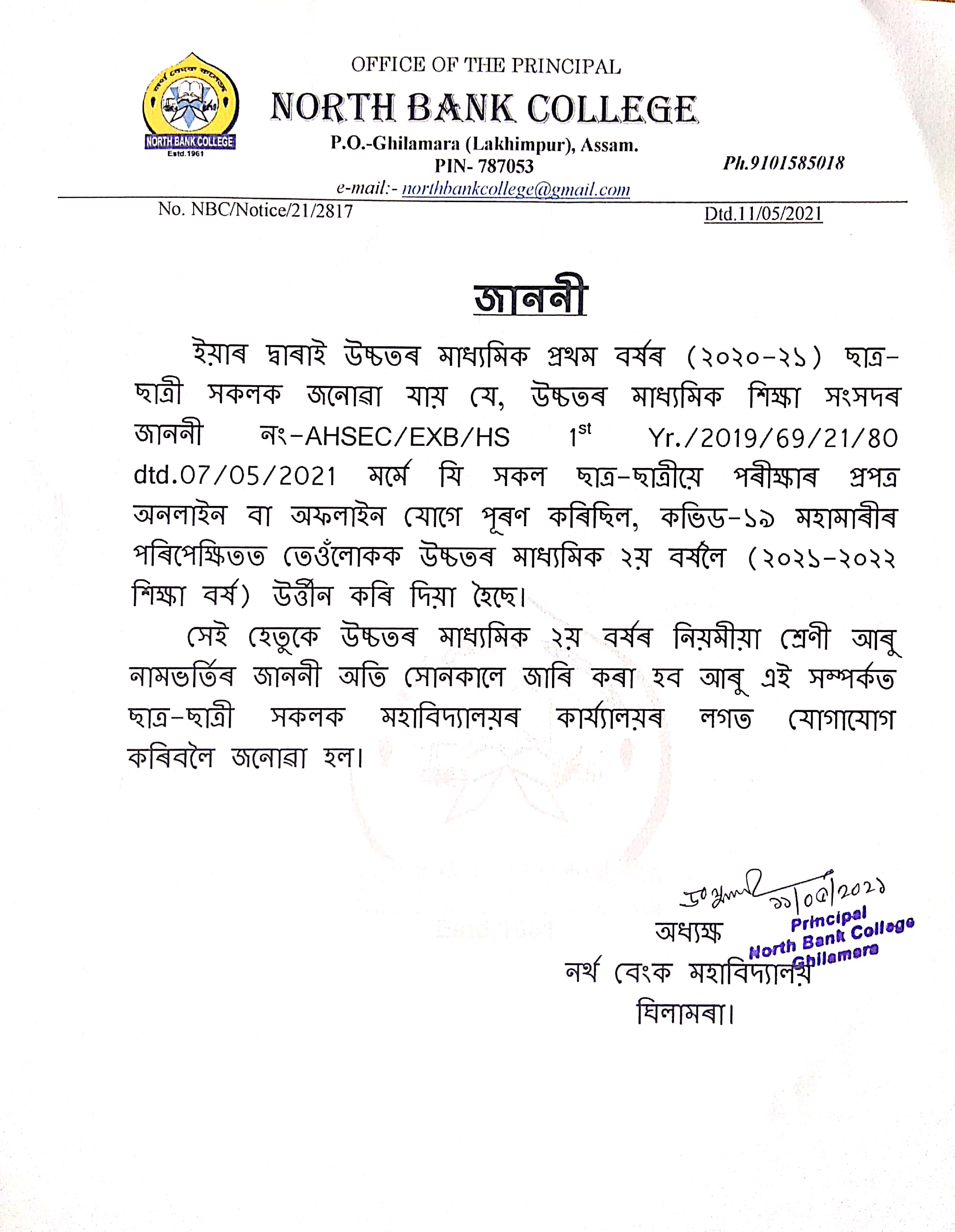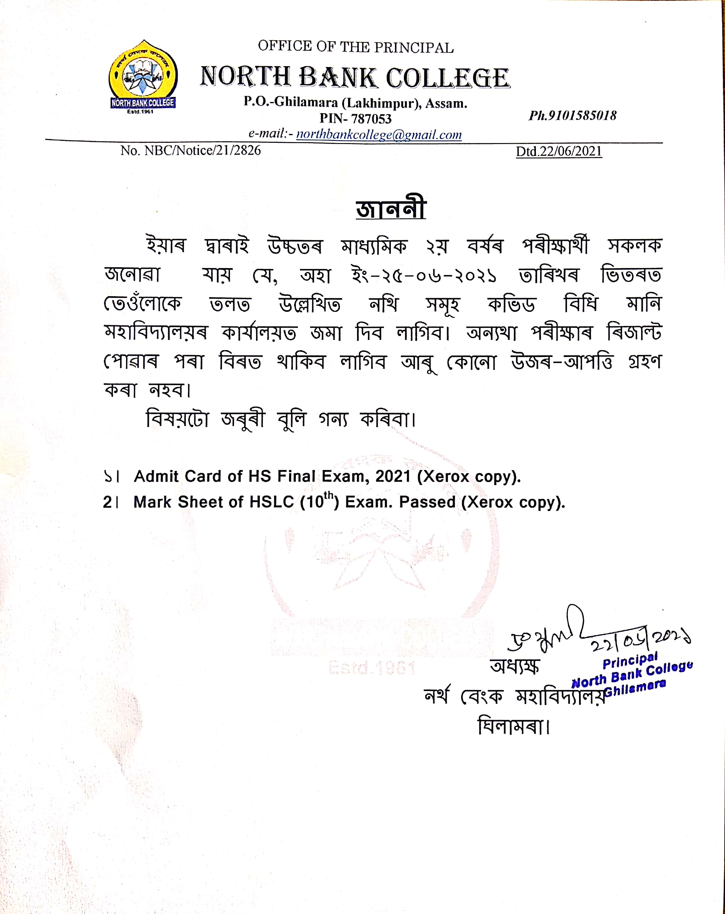 Regarding Practical Exam. of HS 2nd Yr. Final Exam.-2021