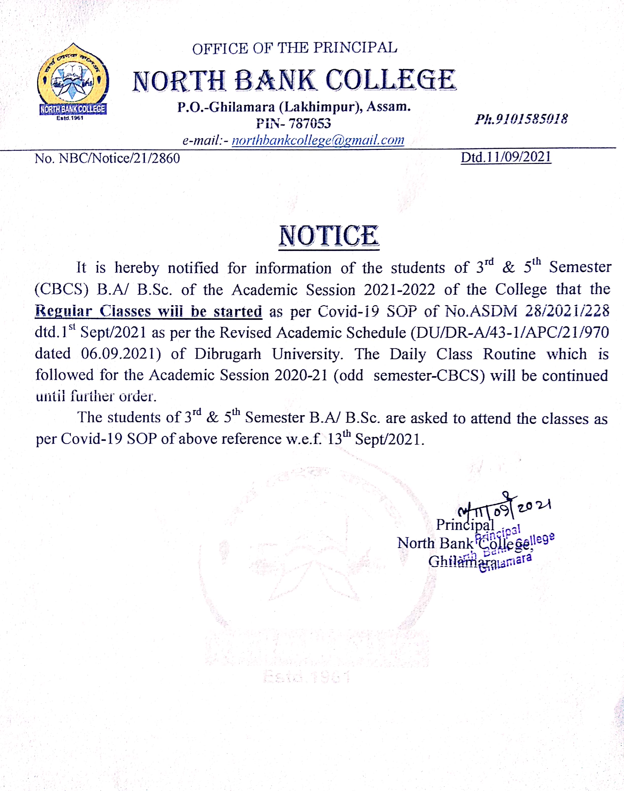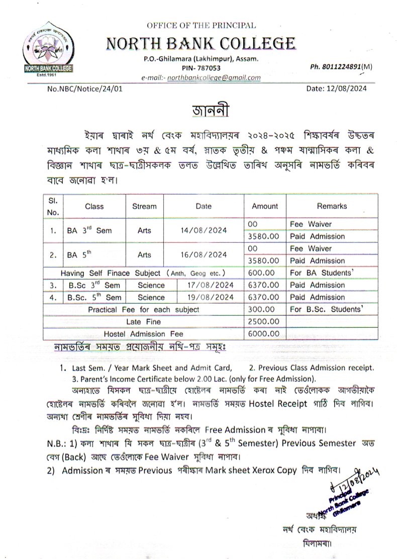 Admission Notice for 3rd and 5th Sem BA & BSc