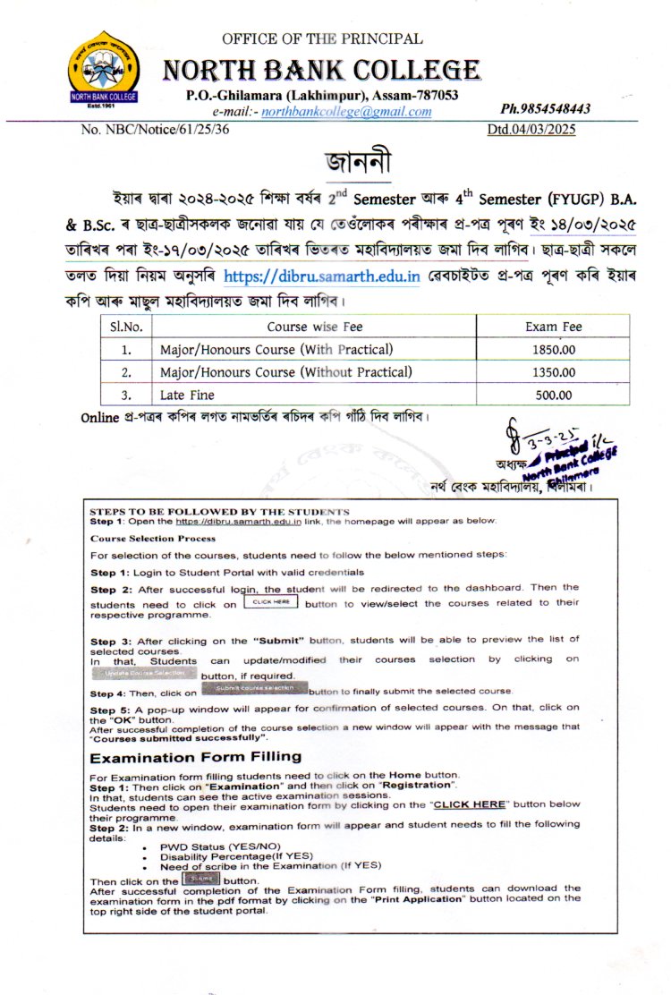 Exam Form Fill Up of 1st Sem. with Registration, 3rd and 5th Sem (FYUGP)-2025