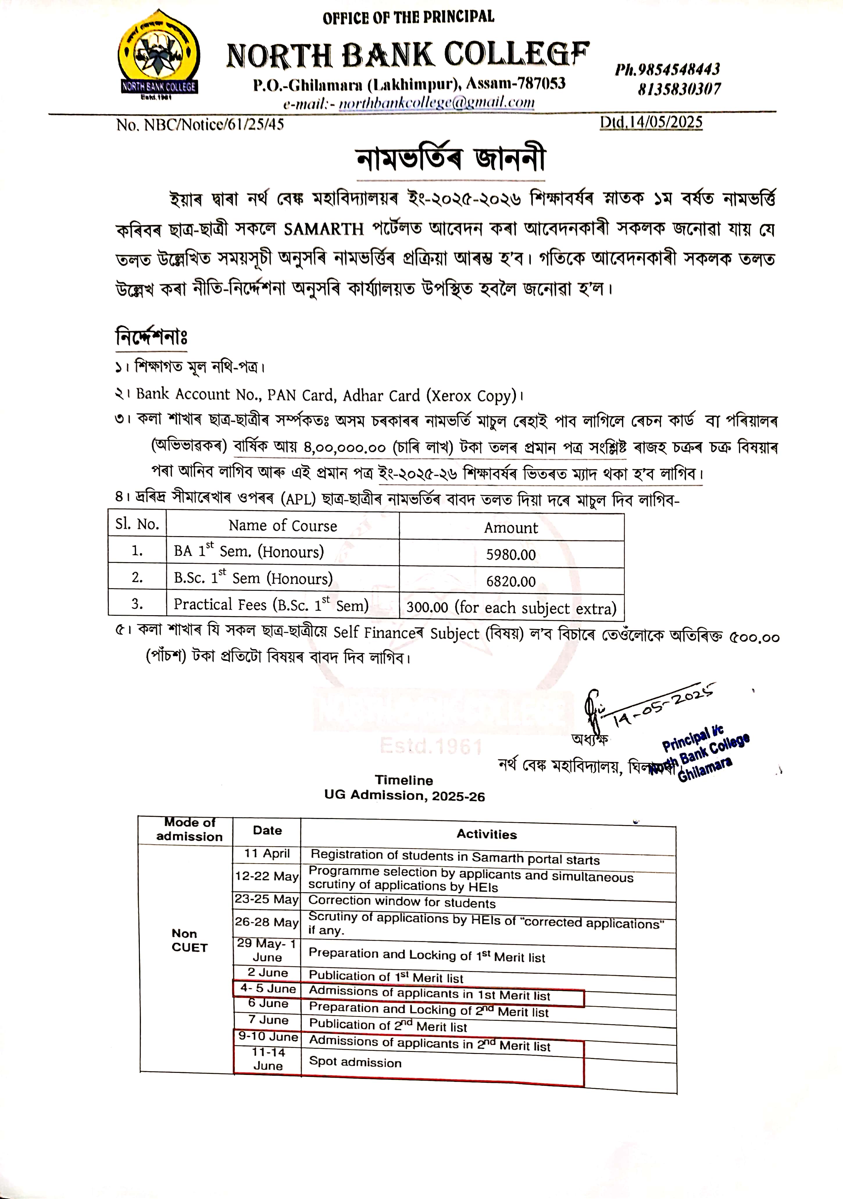 Admission Notice for UG Programme 2025-26